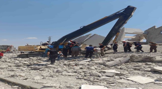 KAHRAMANMARAŞ’TA YIKIM YAPARKEN MOLOZLARIN İŞ MAKİNASINA DÜŞMESİ SONUCU OPERATÖR YARALANDI