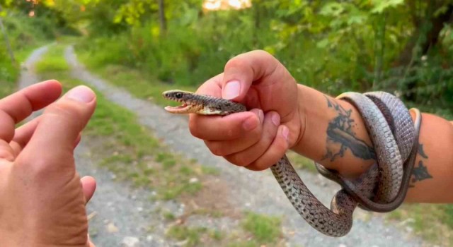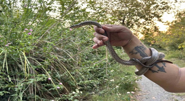 İki tane fare çıkartmış düşündüğüm gibi iki tane yemiş. Şimdi bu zehirsiz bir yılan türü kırbaçgiller familyasından yine karayılan, bozyürük ve hazer yılanı o aileden. Kırmızı yılan dediğim bir türden. Agresif bir türdür saldırma eğilimi gösterir o da kendini korumak için yapıyor bunu zehir dişleri olmadığından. Şimdi bunu da yakaladık kurtardık doğaya salacağız birazdan. Yılanlar doğamız ve ekosistem için önemli canlılardır yılan türlerinin tanınmasını istiyorum. Yakaladığım yılanları tanıtmaya yönelik görsellerini paylaşıyorum her yılan zehirli değildir. Bunların doğada gerçekten çok önemli görevleri var. Bunlar biz görmeden doğada birçok noktada kemirgenleri yiyor. Bir dengeyi sağlıyor bunu bilmemiz lazım" ifadelerini kullandı.