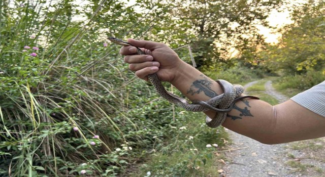 Kemal Başer, elleriyle yakaladığı yılan hakkında bilgi vererek, "Şimdi eve girmiş, mutfakta yakalandı zaten bir yılan eve geliyorsa evin çevresinde geziyorsa o bölgede besleneceği bir canlı vardır. Özellikle fareler için gelir farenin kokusunu alır, onu avlamaya gider, yılan gezen yere fare gelmez. Farenin olduğu yere de yılan gelir öyle söyleyeyim. Bu da yakalamış zaten bunu yakalandığında karnına baktım, yeni beslenmiş dedim en az da bir tane yemiştir dedim ve yılanı yakalayıp çuvala koydum. Doğaya bırakmak için getirirken hayvan strese girmiş fareleri çıkartmış.