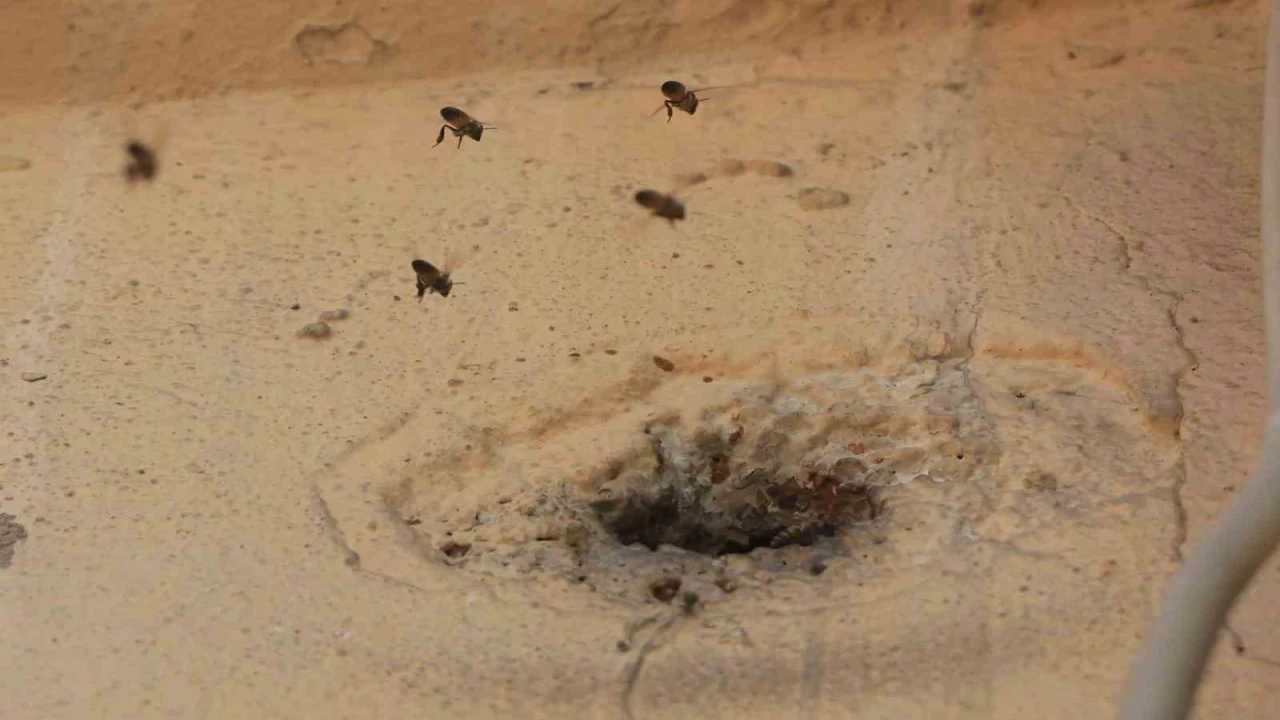 HATAY (İHA) - Hatay'da 2 katlı binanın giriş katındaki duvarda bulunan delikten içeri girerek yuva yapan bal arılarını, yuvaya taş atan çocuklar kızdırdı.