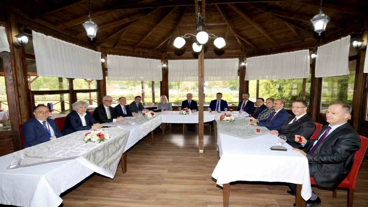 Daha sonra Yükseköğretim Kurulu Başkanı Prof. Dr. Erol Özvar başkanlığında bölge üniversiteleri rektörleri ile toplantı gerçekleştirildi. Toplantıya Akdeniz Üniversitesi Rektörü Prof.Dr. Özlenen Özkan, ALKÜ Rektörü Prof. Dr. Kenan Ahmet Türkdoğan, Alanya Üniversitesi Rektörü Prof. Dr. Aykut Ekinci, bölge üniversitelerinin rektörleriyle Prof. Dr. Tuncer Karpuzoğlu Organ Nakli Enstitüsü Müdürü Prof. Dr. Ömer Özkan, Rektör Yardımcıları Prof. Dr. Ayşe Gülbin Arıcı, Prof. Dr. Cengiz Toker, Prof. Dr. Şükrü Özen katıldı.