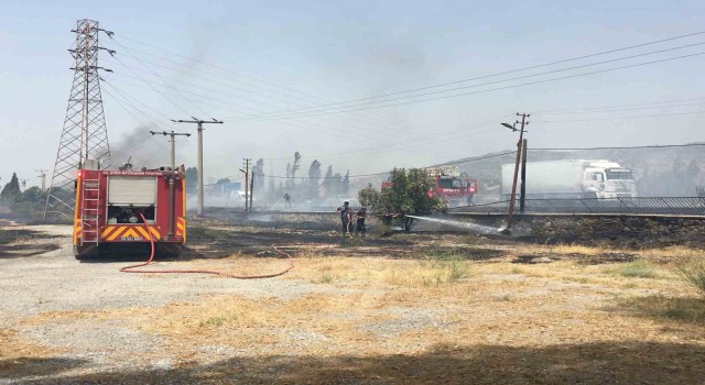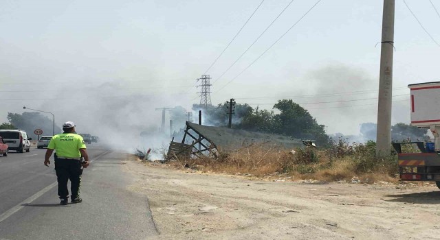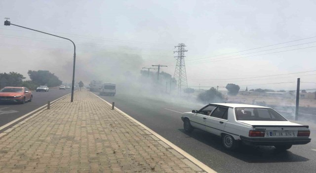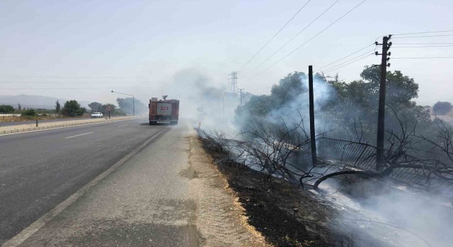 Aydın’ın Efeler ilçesinde yol kenarında başlayan yangın YİKOB depolarının bulunduğu alana sıçradı. Alevler depolara ulaşmadan söndürüldü.