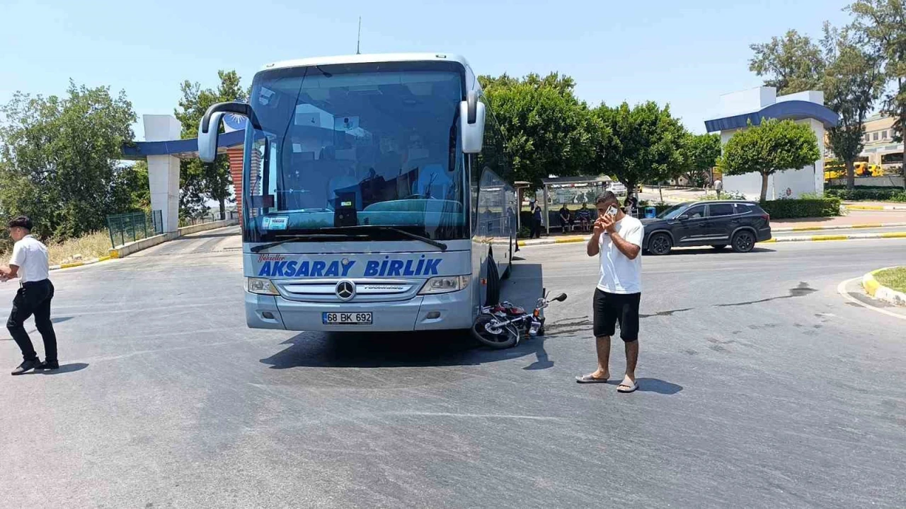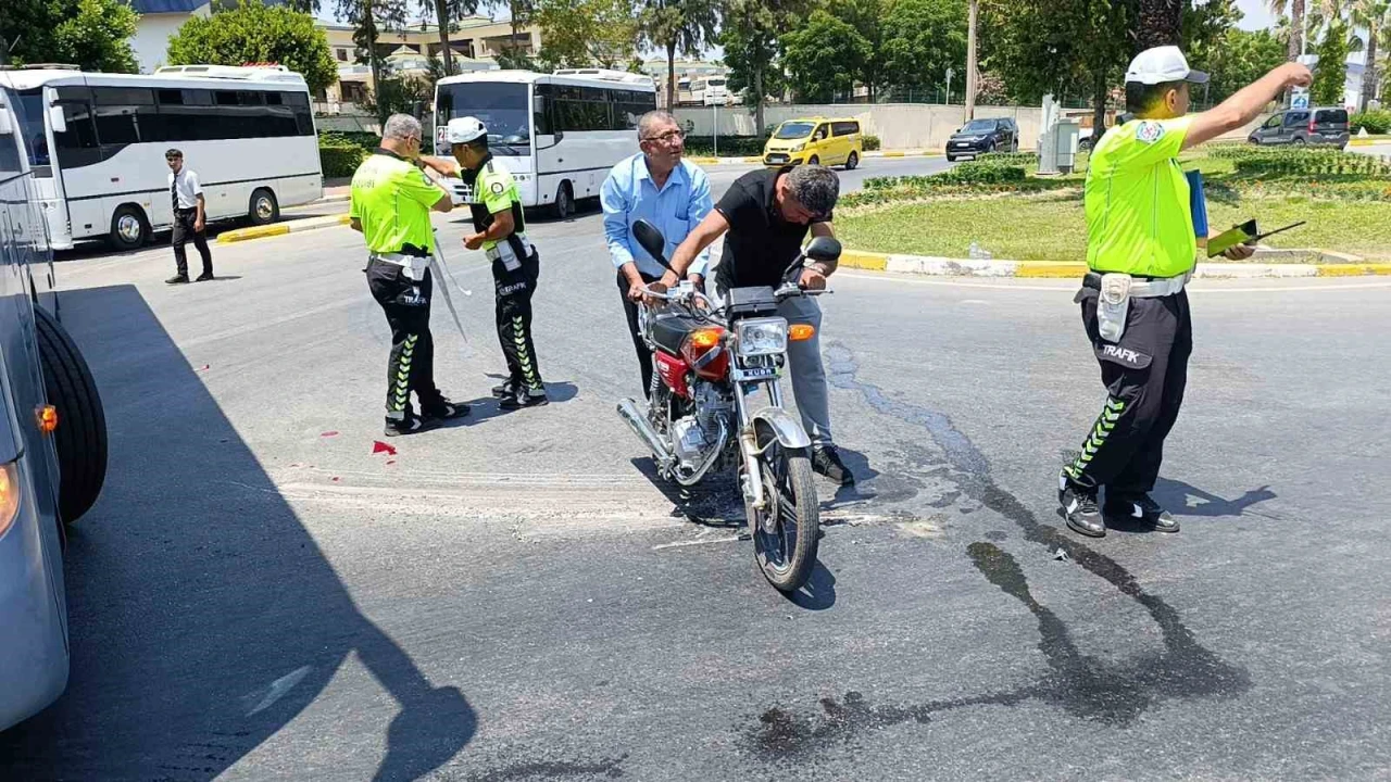 Antalya’nın Manavgat ilçesinde şehirlerarası yolcu otobüsüyle çarpışan motosikletin sürücüsü kazada yaralandı.