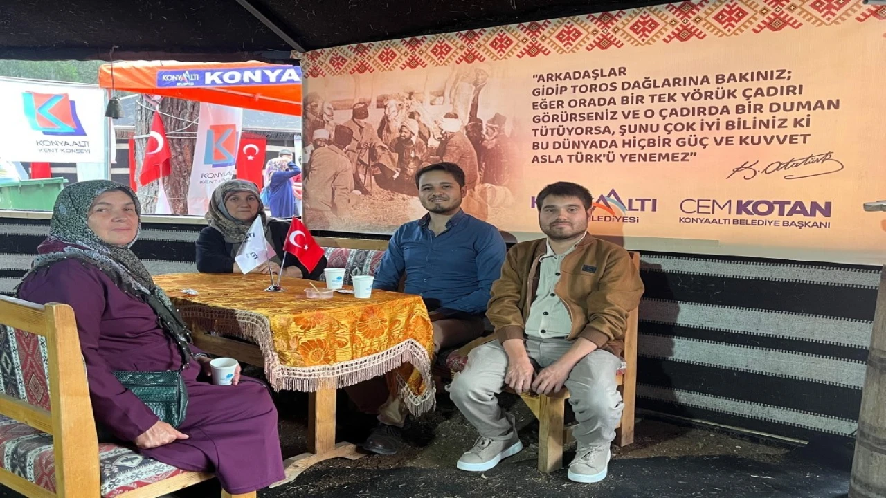 Konyaaltı Belediyesi, festival alanında kurduğu çadırla etkinliğe katıldı. Yörük kültürünün tüm yönleriyle tanıtıldığı alanda, geleneksel öğelere de yer verildi. Konyaaltı’nın çadırı hem dinlenme noktası hem de kültürel paylaşım alanı olarak kullanıldı. Öte yandan vatandaşlar yöresel müzikler eşliğinde dans etti. Çadıra gelen vatandaşlara ücretsiz lokmanın yanı sıra çay, su ve kahve ikramı da yapıldı.