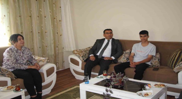 Hakkari’nin Yüksekova ilçesinde LGS’de birinci çıkan Yusuf Samet Kaya evinde ziyaret edilerek, üstün başarısından dolayı tebrik edildi.