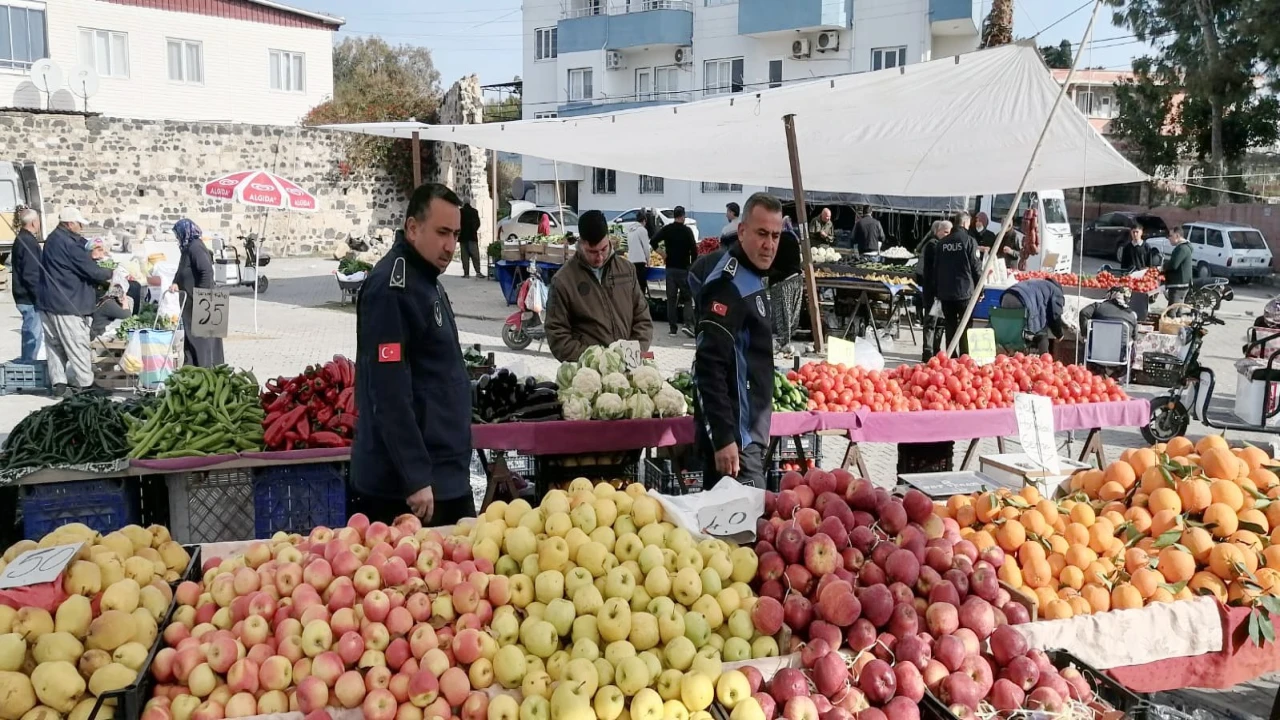 Yumurtalık Belediyesi zabıta ekipleri, halk pazarında etiket ve hijyen denetimi yaptı.