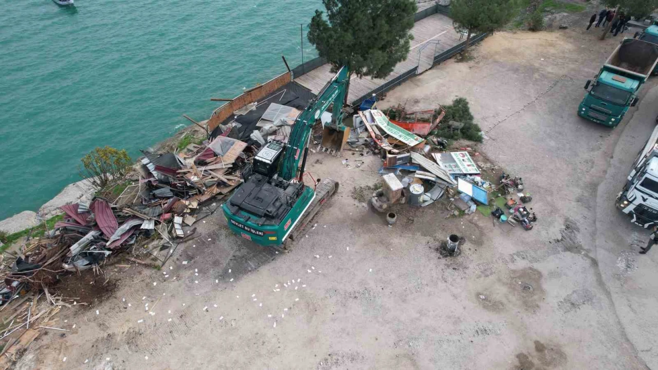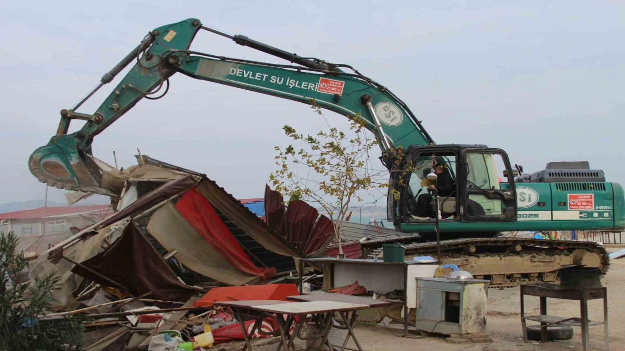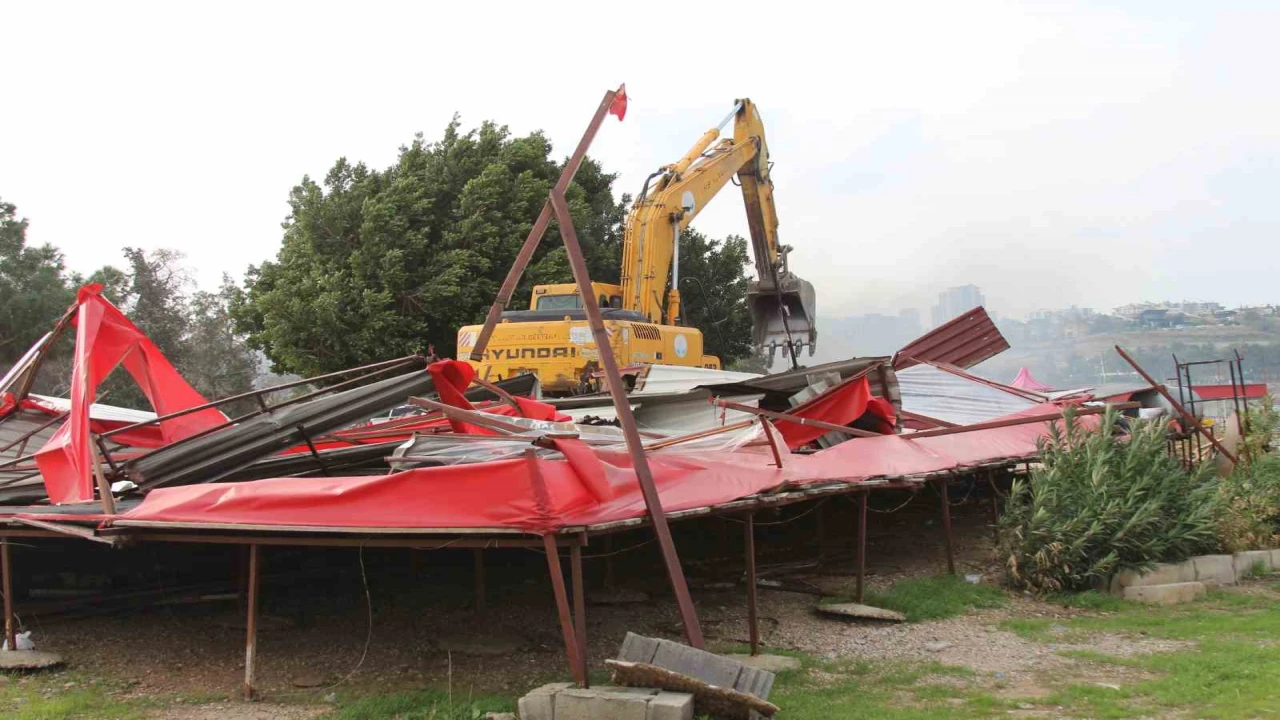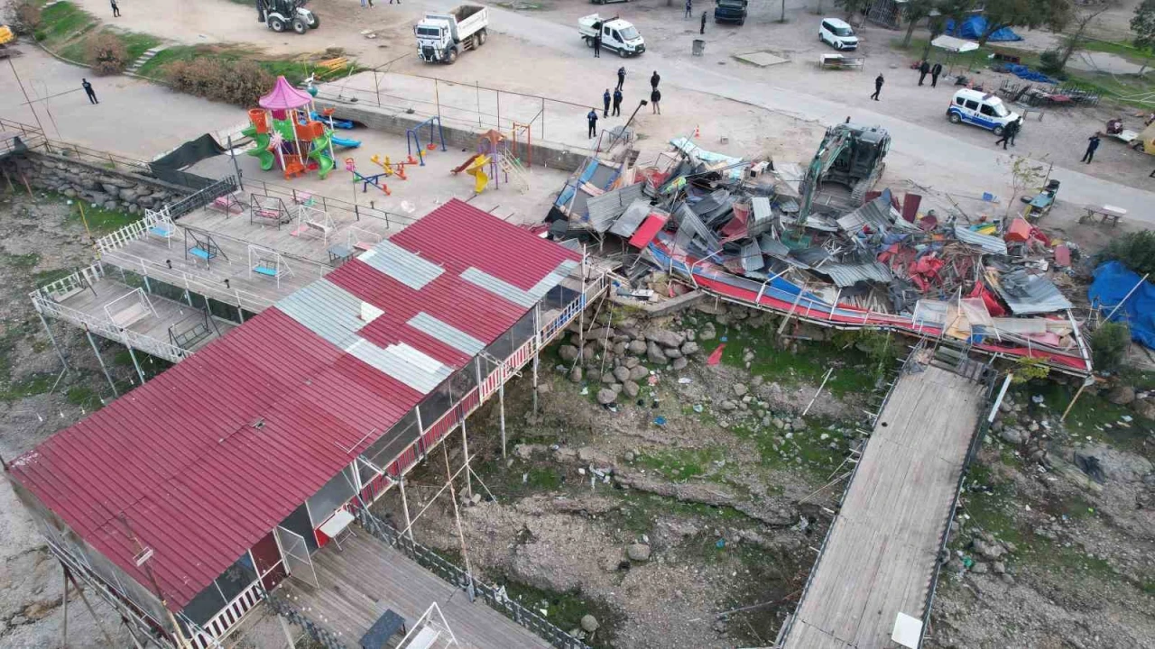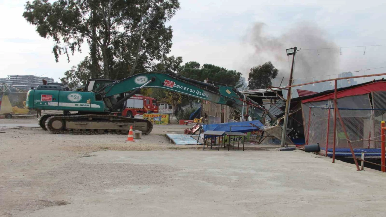 Yaşanan gerginliğin son bulması ve yangınların söndürülmesiyle yıkım başladı. Kepçelerin iş yerlerini yıktığı anlar havadan ve karadan görüntülendi.