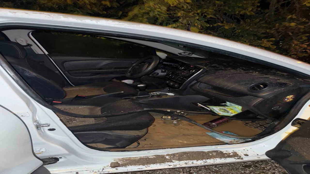 Antalya’nın Alanya ilçesinde DSİ’ye ait sulama borusunun patlaması sonucu park halindeki bir otomobil suyla birlikte portakal bahçesine sürüklendi.