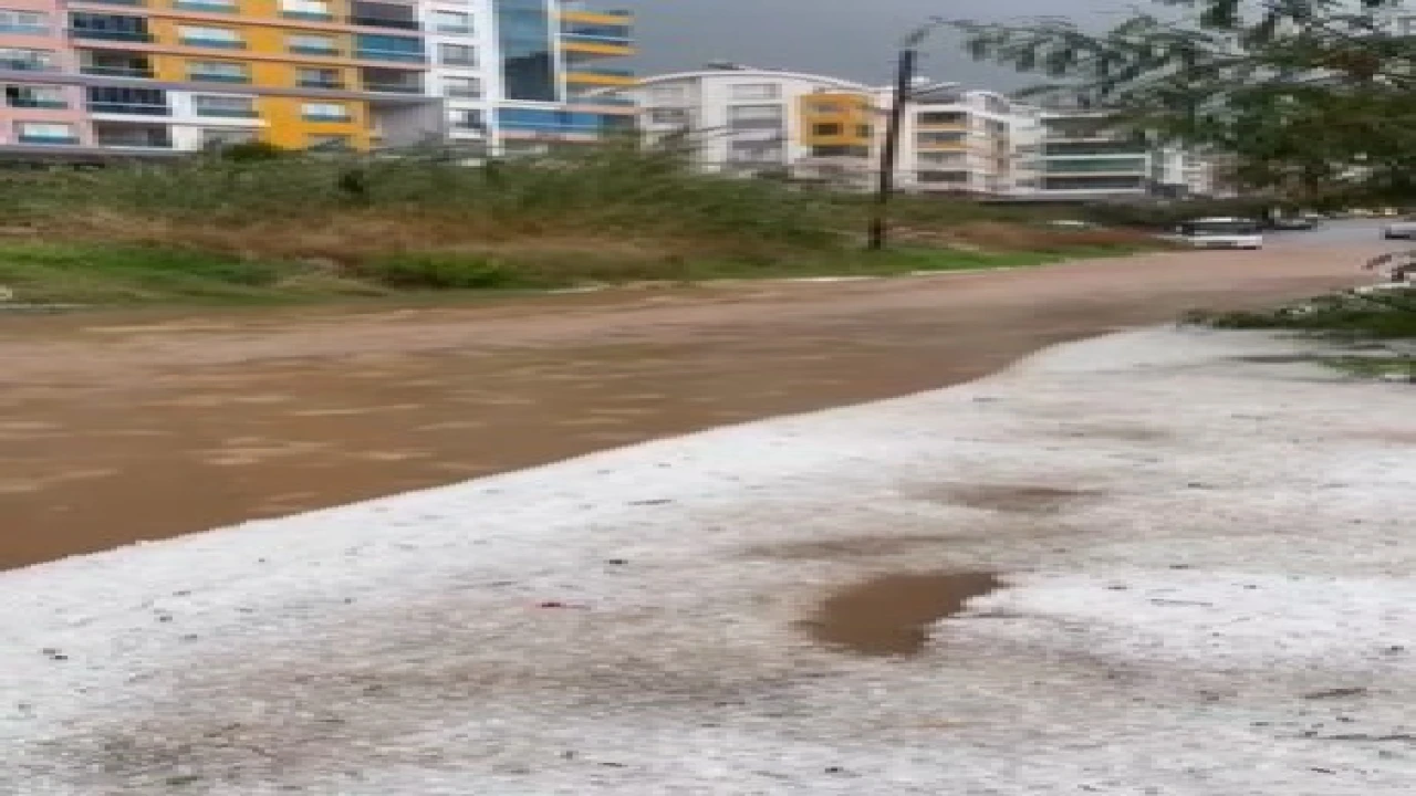 Antalya’nın Alanya ilçesinde öğle saatlerinden itibaren etkili olan sağanak yağış ve dolu sebebiyle sokaklar beyaza büründü yollar göle döndü, araçlar ilerlemekte zorlandı.