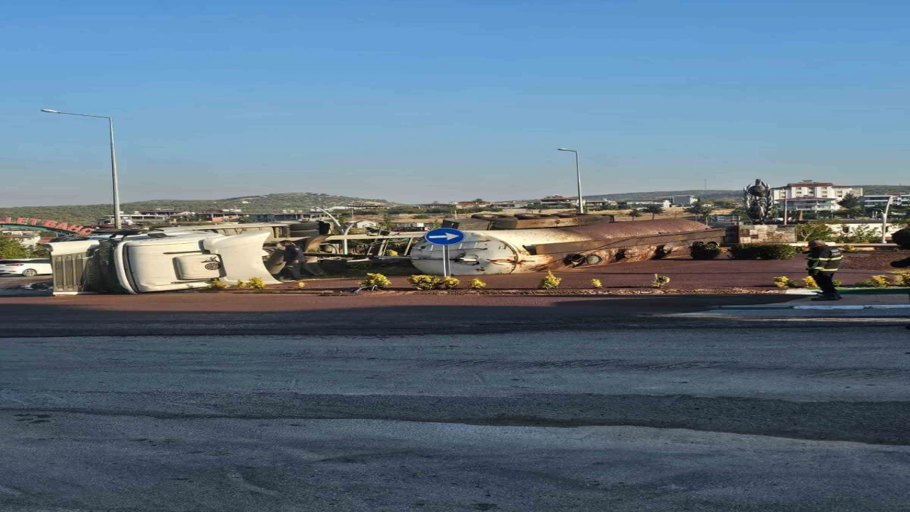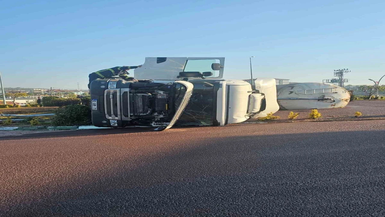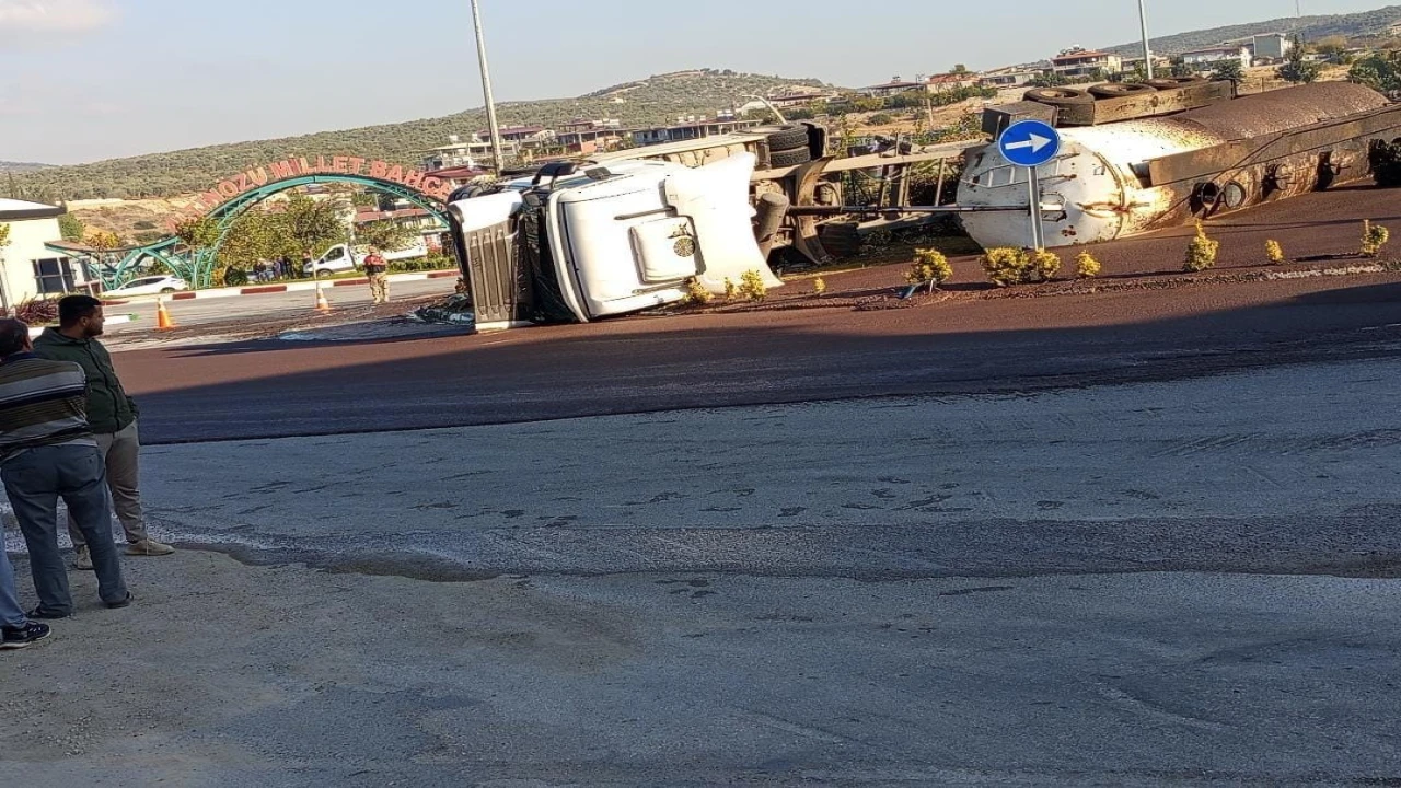 HATAY (İHA) - Hatay’ın Altınözü ilçesinde devrilen zeytin posası yüklü tanker sürücüsü yaralandı.