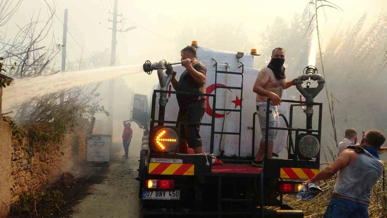 ANTALYA’DA OTLUK ALANDA BAŞLAYAN VE RÜZGARIN DA ETKİSİYLE KISA SÜREDE GENİŞ ALANA YAYILAN YANGIN TÜM MAHALLEYİ TEHDİT ETTİ. BAZI EV VE İŞYERLERİ ALEVLERE TESLİM OLURKEN, 7’DEN 77’YE BÜTÜN MAHALLE EKİPLERE YARDIMCI OLMAK İÇİN SEFERBER OLDU.