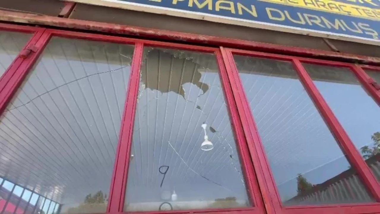 SALDIRI SONUCU 2 İŞ YERİ İLE PARK HALİNDEKİ ARAÇTA HASAR OLUŞTU
