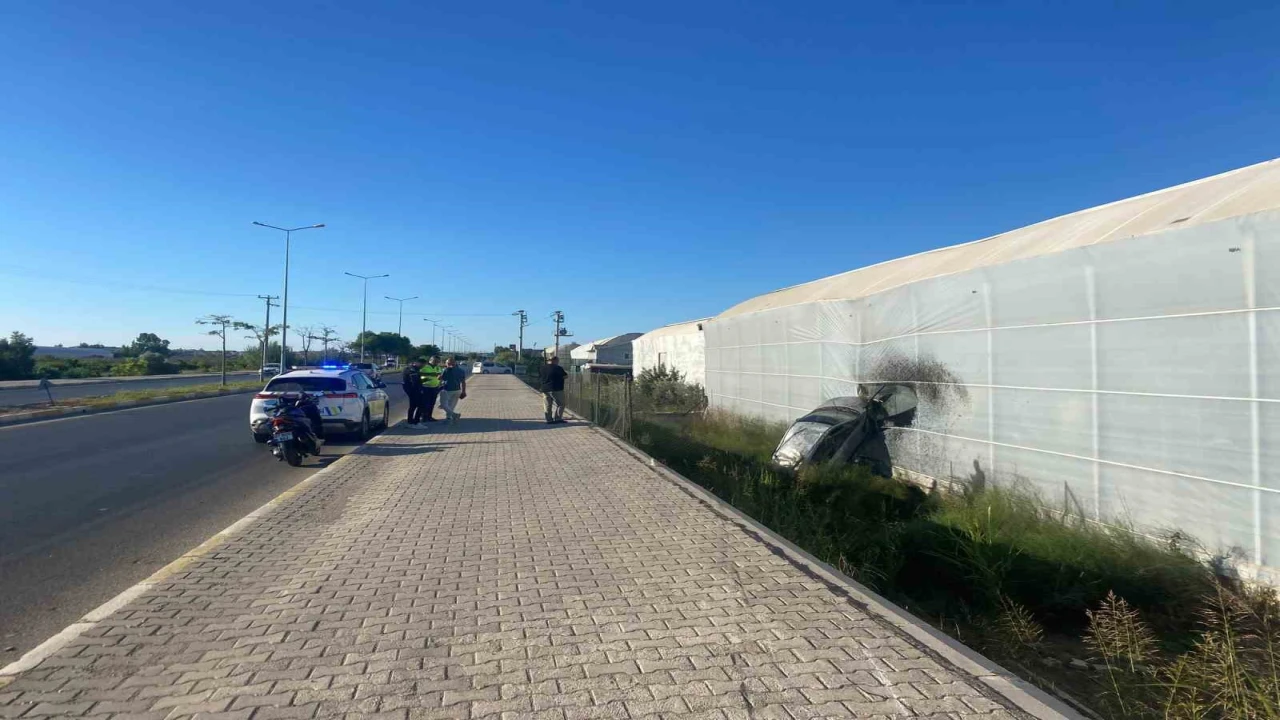 Antalya’nın Serik ilçesinde direksiyon hâkimiyetini kaybeden sürücü, otomobiliyle yoldan çıkarak yol kenarındaki muz serasına girdi. Yaralanan sürücü hastaneye götürüldü.