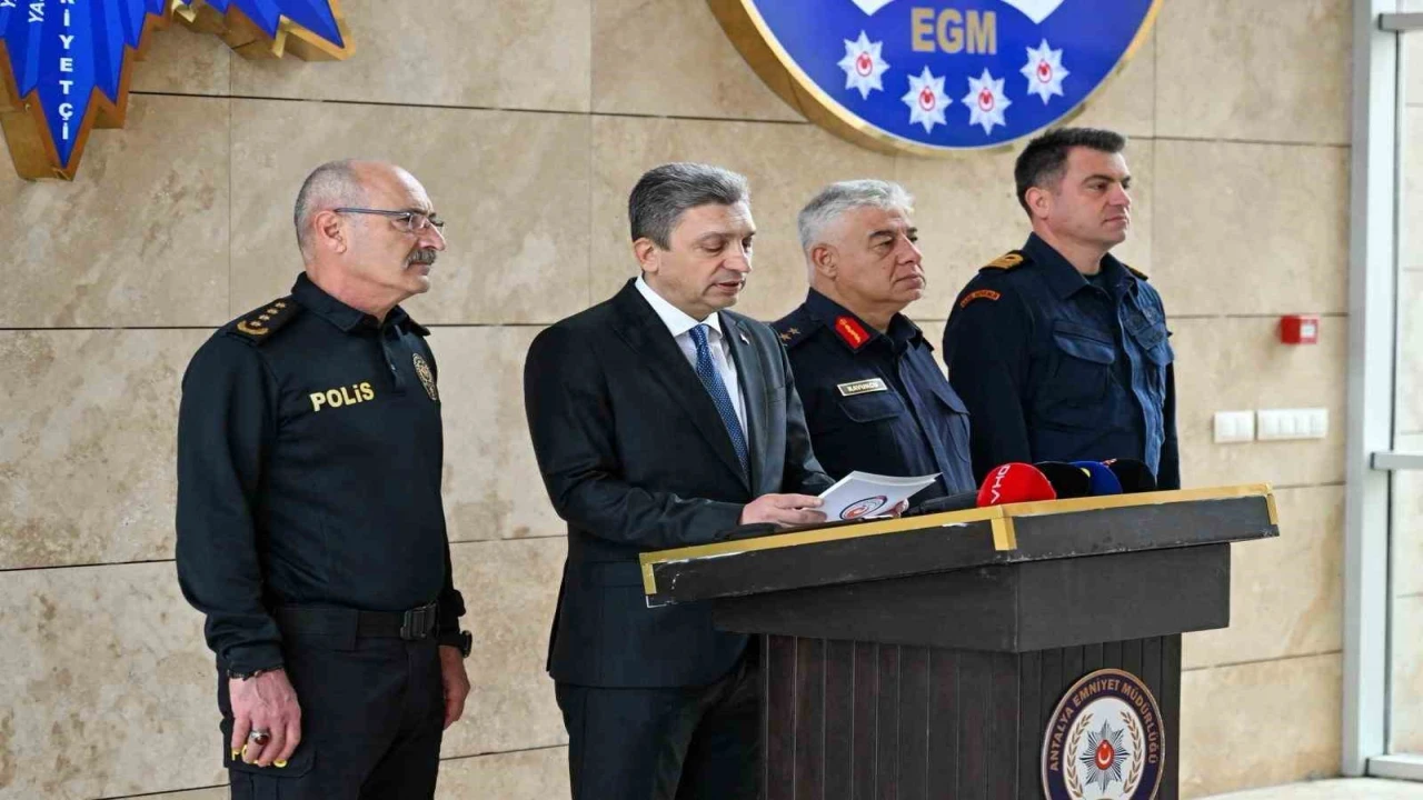 İl Emniyet Müdürlüğü’nde gerçekleştirilen basın bilgilendirme toplantısına Antalya Valisi Hulusi Şahin’in yanı sıra İl Emniyet Müdürü Dr. Sabit Akın Zaimoğlu, İl Jandarma Komutanı Tümgeneral Ahmet Kavukcu ve Sahil Güvenlik Grup Komutanı Yarbay Tolga Coşkun da katıldı.