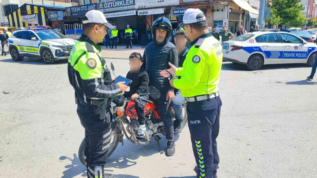 Denetimler sırasında ekiplerin dikkatini çeken bir olay yaşandı. Bir motosiklet sürücüsünün, fiziksel engelli oğlunu kask takmadan motosikletin ön kısmında taşıdığı görüldü. Polisi karşısında gören baba durdurulurken, yapılan incelemenin ardından sürücüye cezai işlem uygulandı. Ancak olay bununla sınırlı kalmadı. Trafik ekipleri, küçük çocuğu sevindirerek çeşitli hediyeler verdi. Polis ekipleri babaya, en ufak bir sarsıntıda çocuğun düşebileceğini belirterek daha dikkatli olması konusunda uyarılarda bulundu.