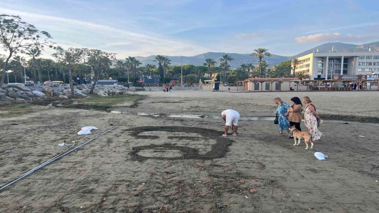 Kumun doğal dokusunu tuval gibi kullanan sanatçı, Barış Manço’nun karakteristik yüz hatlarını ve saç detaylarını büyük bir özenle işledi. Çalışma tamamlandıktan sonra, sahilde yürüyen vatandaşlar ve turistler dev portreyi ilgiyle izleyerek cep telefonlarıyla fotoğraf çekti.