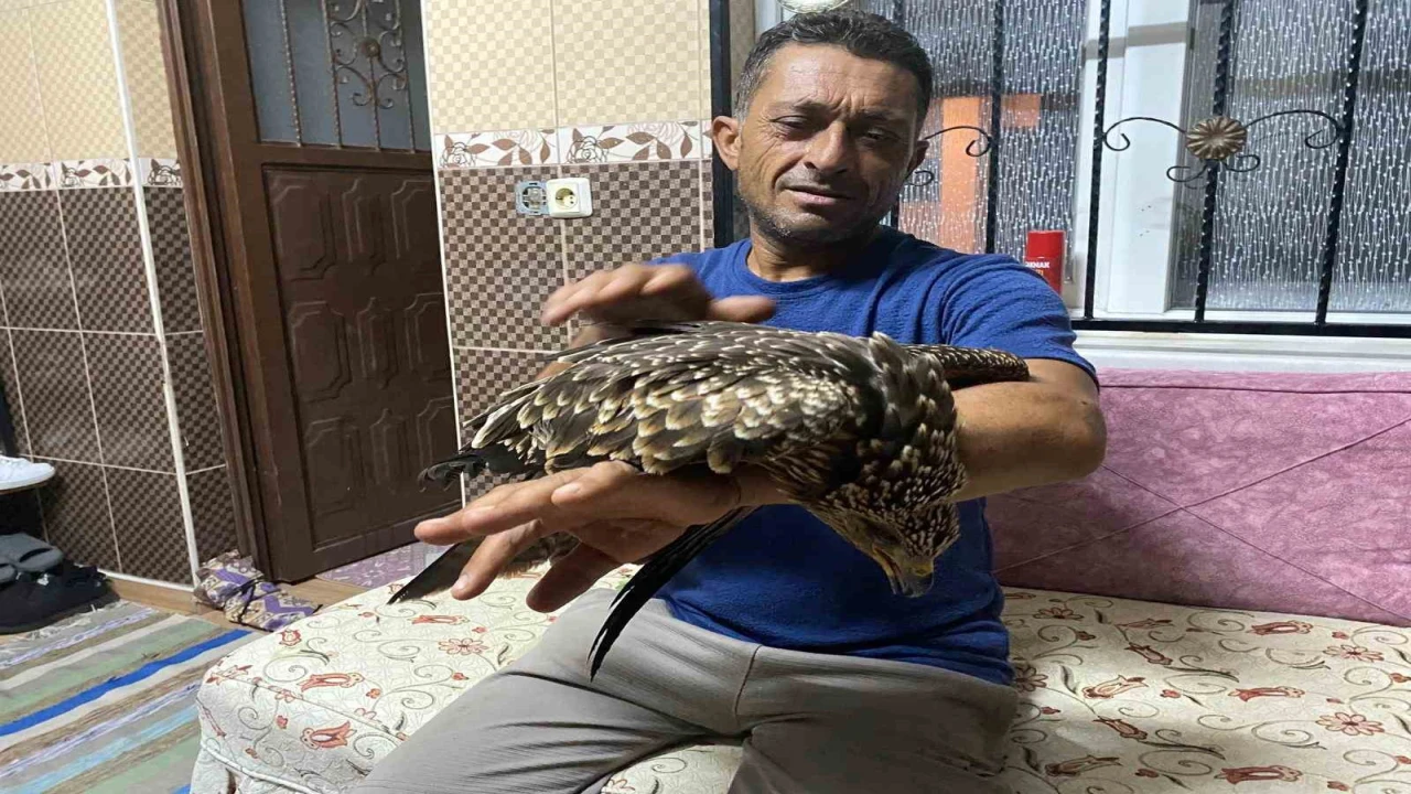 Osmaniye’nin Düziçi ilçesinde incir toplarken kanalın içinde bitkin halde bulduğu şahini kurtaran çiftçi Ali Kötüğ, açlıktan halsiz kalan kuşa ciğer dürümü söyledi.