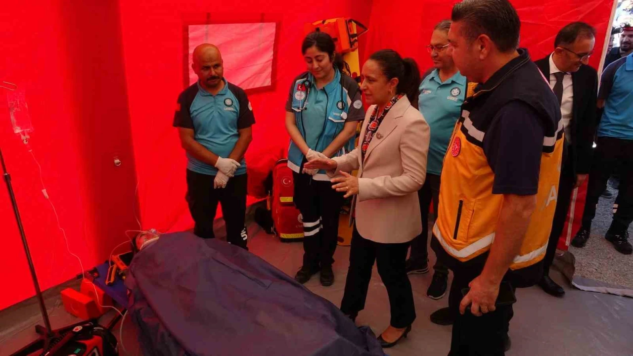 Tatbikat çerçevesinde kurulan toplanma yerine gelerek incelemelerde bulunan Burdur Valisi Tülay Baydar Bilgihan, "Senaryomuza göre 5.7 şiddetinde bir deprem olduğu varsayımıyla hareket ediyoruz. İlimizde 5.7 şiddetinde saat 15.00 sıralarında bir depremin olduğunu varsayarak senaryolaştırmış olduk. Bu senaryo içerisinde özellikle merkezin dışında bulunduğumuz mahallemizde de Menderes Mahallemizde etkilenmiş alanın daha fazla olduğu tespit edilmiş oluyor. Bu çerçevede öncelikli olarak iki sokakta 5 enkaz üzerinden ciddi bir çalışma gerçekleştirerek, iki enkaz üzerinden 5 vatandaşımızdan bir tanesi ölü, 4 tanesi sağ olarak çıkarılmış şekilde senaryolaştırılmış oldu. Bu senaryo içerisindeki temel hedefimiz hem depremin oluş saati hem depremin organizasyonu hem saha hem de masa başı tatbikatında tüm gruplarımızı çalıştırmak. Dolayısıyla senaryoyu oluştururken işte herkesi canlı kurtarmak senaryosu da yapabilirsiniz ama bunun dışında Allah bunu hiç kimseye yaşatmasın. Bir kayıp olduğu zaman da bununla ilgili mutlaka grupların çalışması gerekiyor. Dolayısıyla 23 çalışma grubumuzun faaliyetlerinin yürütülmesi gerekiyor. Bu yüzden 125 vatandaşımızın etkilendiği, 30’a yakın evin hasar aldığı bir senaryo üzerinden hem aynı zamanda kimyasal bir sızıntı olma riski dolayısıyla KBRN ekiplerimizi çalıştırdığımız, dolayısıyla etkilenme açısından bir mahallede yoğunlaştığımız bir senaryo gerçekleştirdik" dedi.