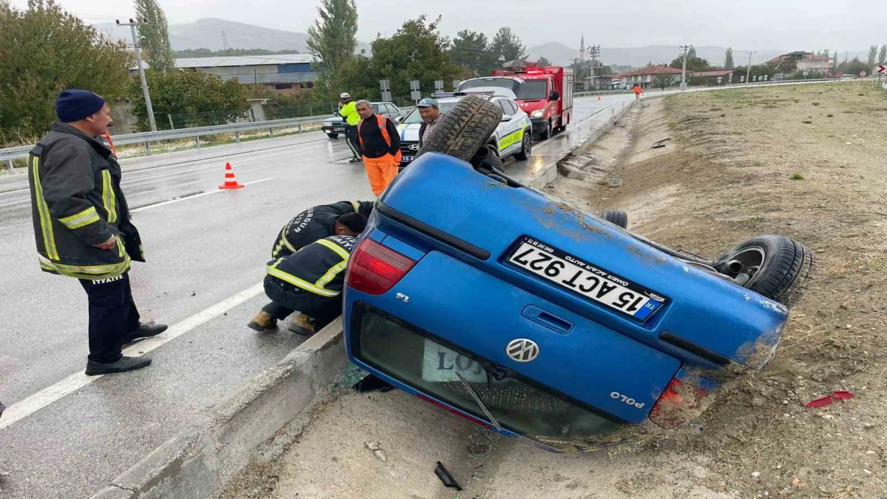 Burdur’da sürücüsünün direksiyon hakimiyetini kaybetmesi sonucu meydana gelen trafik kazasında otomobil devrilirken araçta sıkışan sürücü itfaiye ekipleri tarafından kurtarıldı.