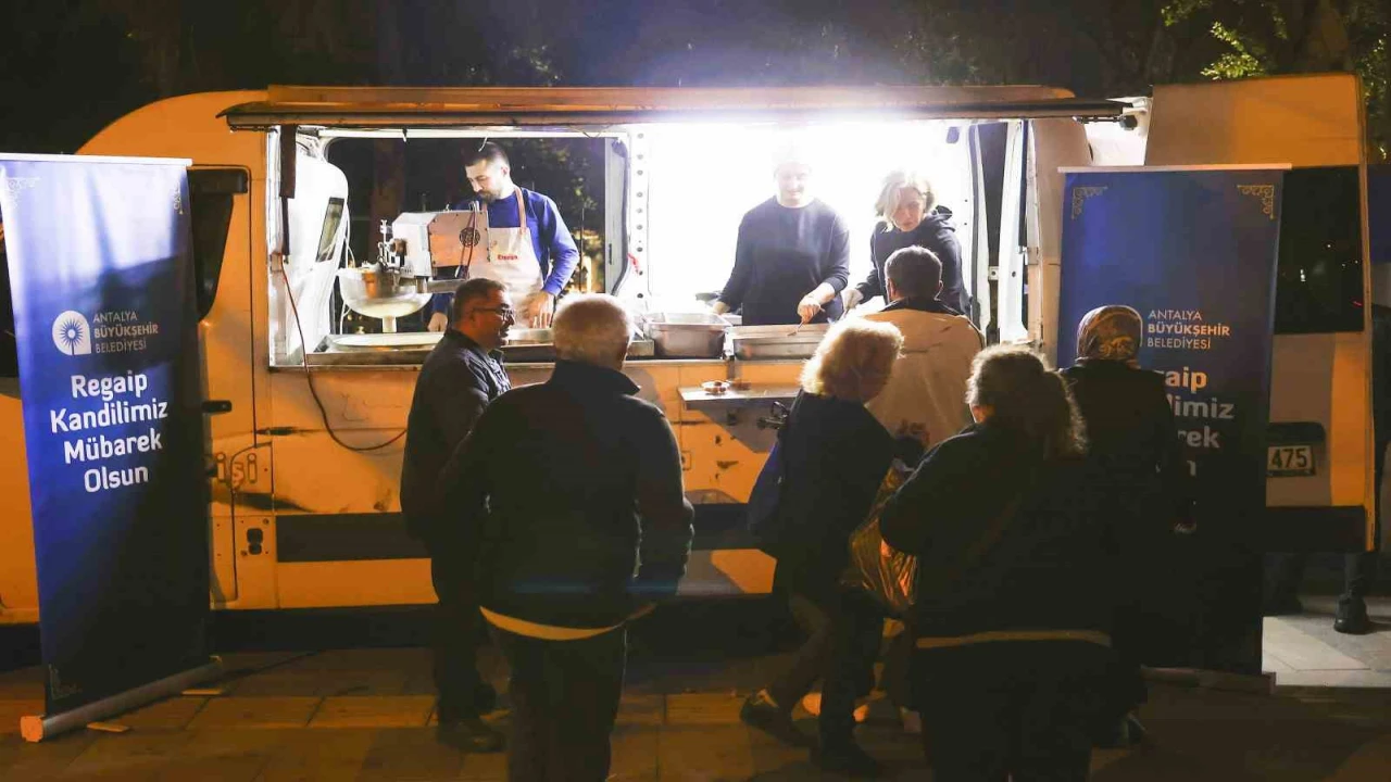 Antalya merkez ilçelerde Muratpaşa Camii önünde 3 bin 500 kişiye, Kepez Uyaroğlu Camii önünde ise bin 500 kişiye sıcak lokma ikramı yapıldı. Büyükşehir Belediyesi, Antalya’nın 19 ilçesinde ise özel olarak hazırlanan 10 bin kişilik kandil simidi vatandaşlara ikram etti. Vatandaşlar ikramlara yoğun ilgi gösterirken, Regaip Kandili’nin manevi ikliminde birlik, beraberlik ve paylaşma duygusu hep birlikte yaşandı.