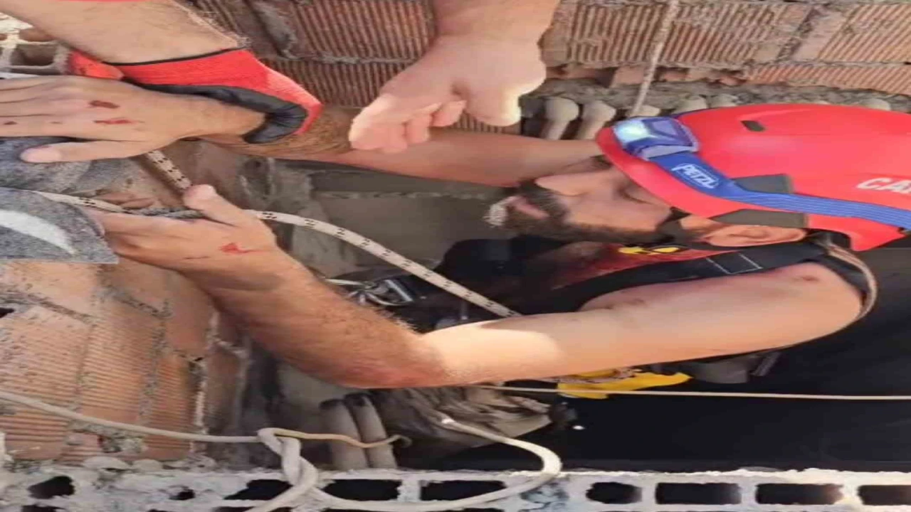 ADANA'DA 5 KATLI BİNANIN DAMINDA BOYA YAPARKEN HAVALANDIRMA BOŞLUĞUNDAN AŞAĞI DÜŞEN GENÇ İŞÇİ, İTFAİYE EKİPLERİ TARAFINDAN KURTARILDI