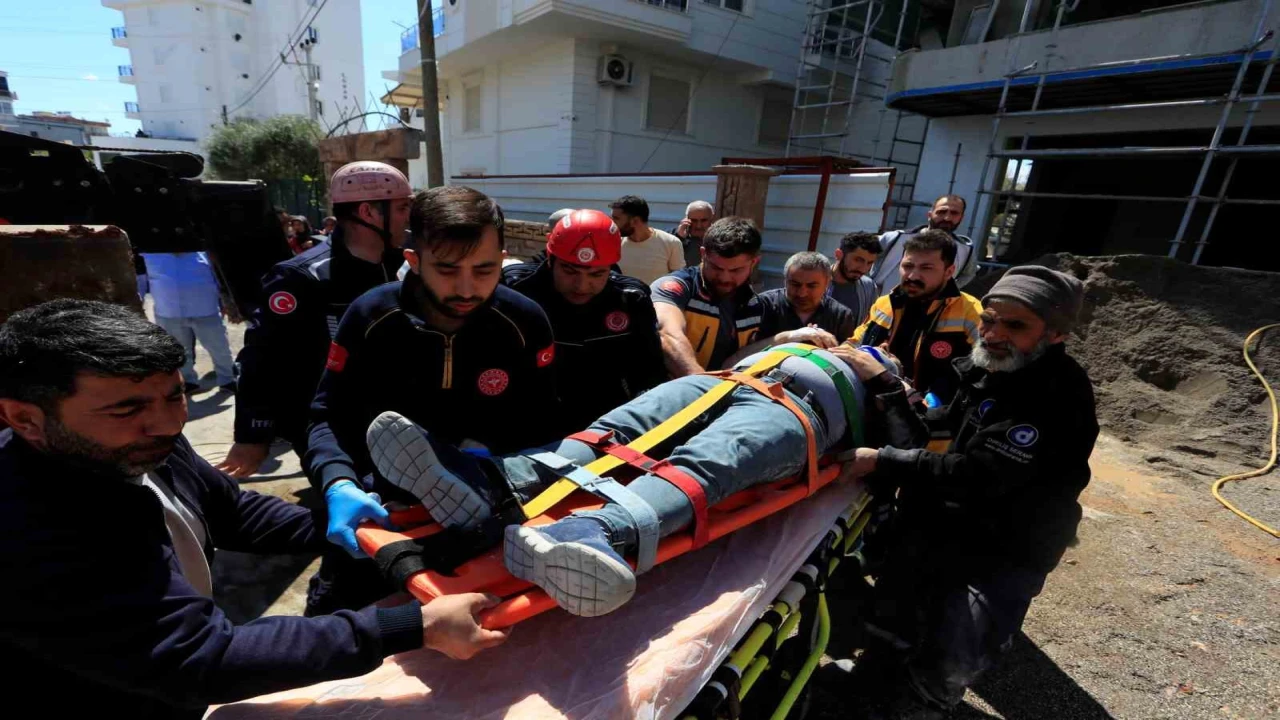 Antalya’da inşaat iskelesinden üst kata çıkarken düşerek yaralanan işçi itfaiye ekiplerince vinçle bulunduğu yerden kurtarıldı.