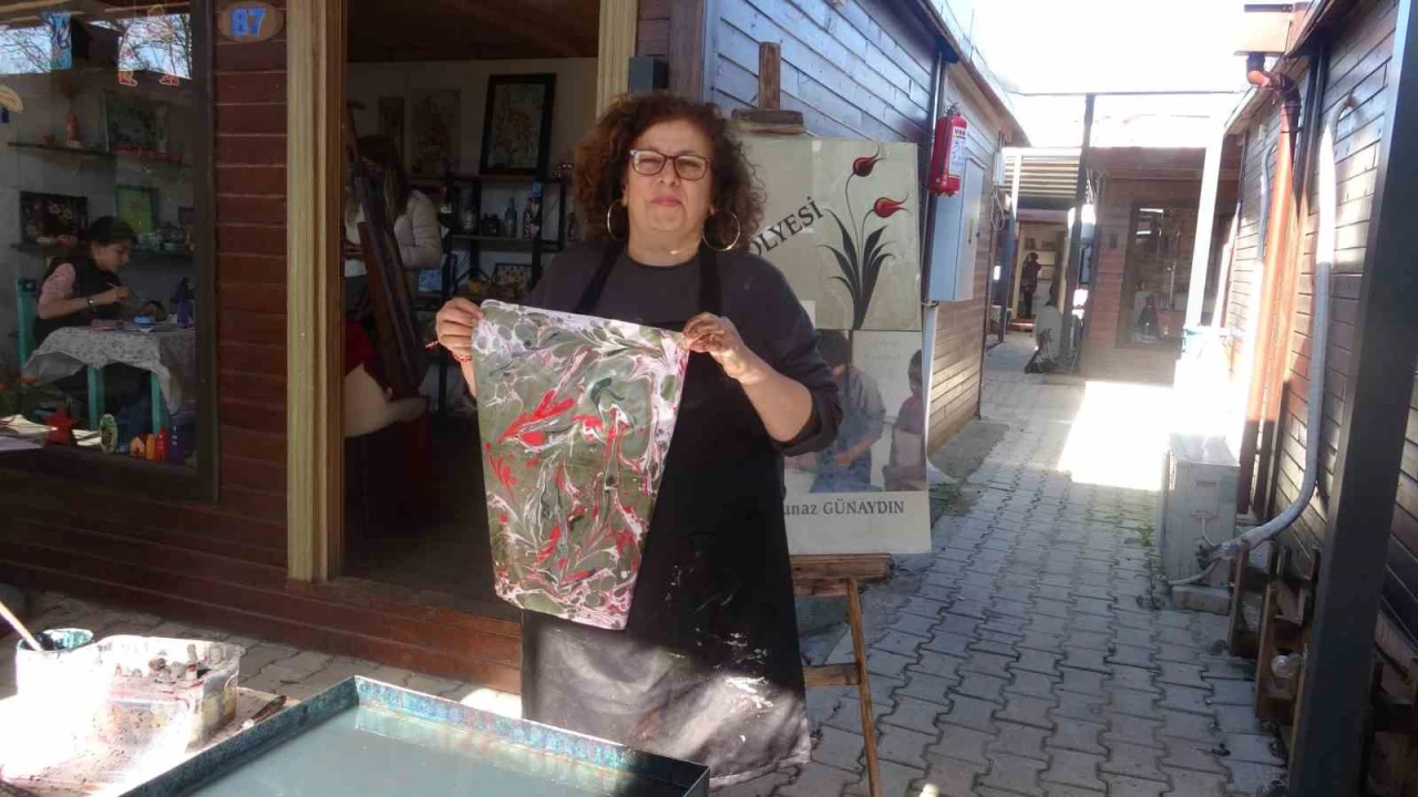 Kadınların kafalarına koydukları her konuda başarılı olacağını söyleyen ve 41 yıldır ebru sanatını icra eden Durdunaz Günaydın, "Ben 41 yıldır bu işin içindeyim. Ben hem ressamım hem de ebru sanatçısıyım. Şu anda benim yaptığım meslek ressamlığın dışında Hatay ipeği üzerine ebru sanatçısıyım. Bu ipeğe yönelmem de buradaki ebru sanatçısı olduğum zaman dedim ki bu tek ebru yani kağıtlarda olmasın. Kağıttan çıkartıp seramiğe, ondan sonra işte ahşaba, taşa, deniz kabuğuna kadar her şeye ebru batırdım. Herkesin ebru sanatını tanıması lazım. Bu Hatay’ın ipeklerini, Samandağ ve Harbiye ipeklerini aldım. Onlara o ipekçilerimizi, onlar da bana yardımcı oldular. Onların ipeklerini ebru yaptım. Biz depremde çok kayıplarımız oldu, benim atölyem vardı ve yıkılmadı. Atölyemde kadın olarak benle oğlum beraber çalışıyorduk ve ayakta durmaya çalışıyorduk. Mesleğimi bu şekilde icra etmeye çalışıyorduk fakat depremde çok kayıplarımız oldu. Antakya’da evimiz olduğu halde evimiz yıkıldı. Burada Valimiz Mustafa Masatlı, sağ olsun bize yardımcı oldular. Buradaki sanatçılarımızı toparladılar. Ben de maddi manevi sıkıntıya girdiğim halde ayakta durmaya çalışıyorum. Yavaş yavaş kadın olarak kendimi kanıtlamaya, kendinize ve ailenize yardımcı olmak amacıyla çabalıyoruz. Kadınlar Günü esasında böyle bir günde anmak güzel oldu. Kadınlarımızın ne kadar güçlü ne kadar başarılı olduğunu isterse kadınların hani derler ya taşı sıksa suyunu çıkarırlar. Kadınlar kafalarına bir şey koydukları zaman yaparlar. Kadınlar Günü’nde bütün kadınlarımızın Kadınlar Günü’nü kutluyorum" ifadelerini kullandı.