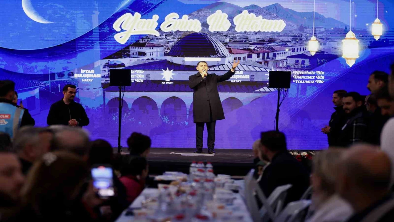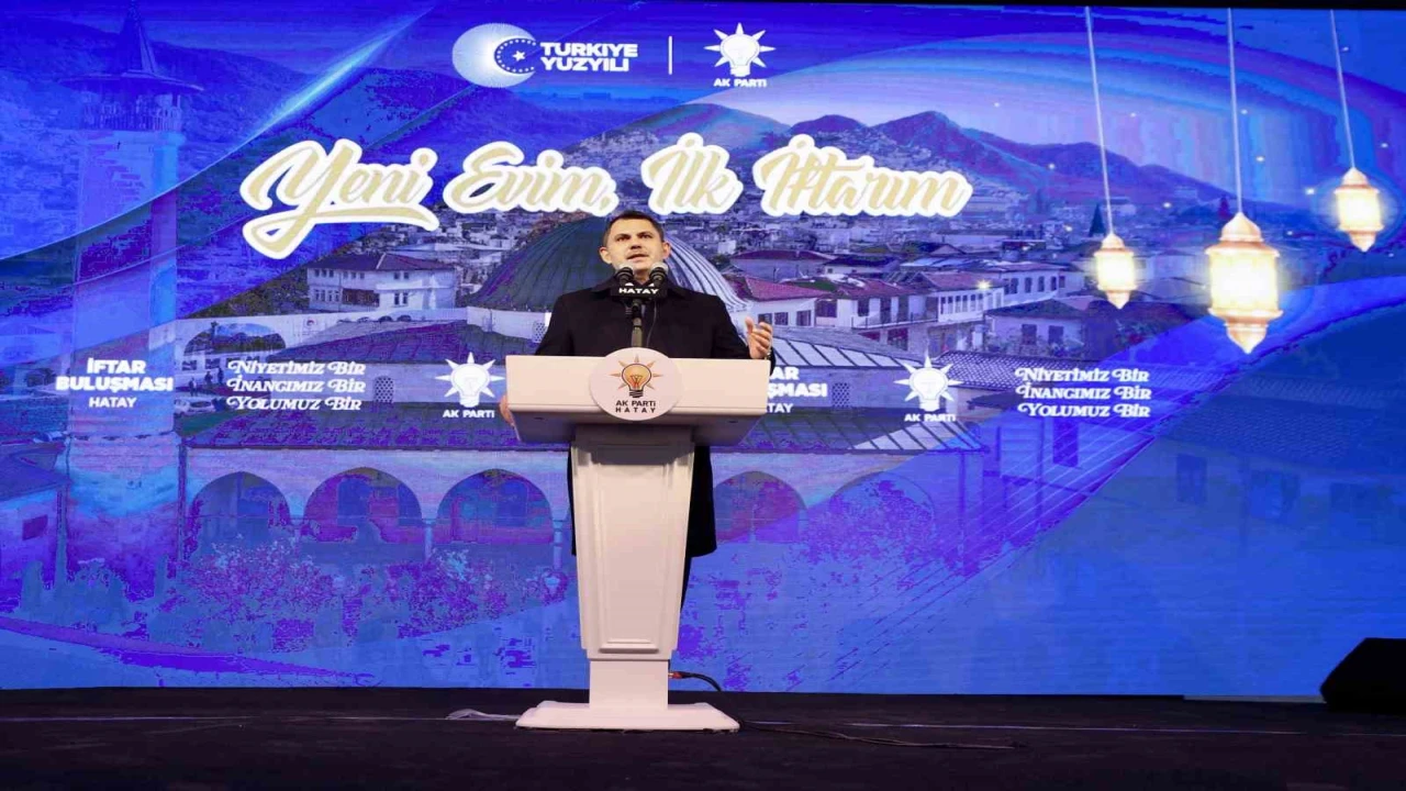 Depremin ardından Hatay’ın yeninden dirildiğini söyleyen Bakan Kurum, "Sözlerimin hemen başında, asrın felaketinde hayatını kaybeden tüm şehitlerimizi bir kez daha rahmetle yad ediyorum. Ramazan ayımızın hayırlara vesile olmasını diliyorum. Bugün Hatay için yola çıkarken düşündüm. Şöyle geriye baktığımda, devlet görevinde bulunduğum süreler boyunca hemen her Ramazan’da Hataylı kardeşlerimizle aynı sofrada oturmak nasip oldu. Bugün de bizi öz evladı gibi bağrınıza bastınız. Ben tüm Hataylı kardeşlerime candan teşekkür ediyorum. Sağ olun, var olun. Hatay’ımız, bizim gönlümüzde bir tanedir. Çünkü buranın, havası başka, suyu başka, insanı başka, kalbimize nakşettiği maneviyatı bambaşka. İnanıyorum ki; sizinle aramızda sonsuz bir muhabbet var. Ben 6 Şubat depremlerinde bu şehrin sokaklarındaydım. O dimdik duran babaların gölgesinde çalıştım, gözyaşlarıyla dua eden annelerle sabahladım. Çok şey gördüm. Ama o gecelerde bir şey daha gördüm ki asla unutamam. Hatay’ın her sokağında acı vardı ama karamsarlık yoktu, hüzün vardı ama eğilmek yoktu. O gün kendime şunu söyledim. ‘Yeniden Diriliş’ kavramı bir şehir olsaydı o şehrin adı Hatay olurdu; ‘Vatan sevdalısı’ bir topluluğa isim olarak verilseydi, o ismin sahibi Hataylılar olurdu" dedi.