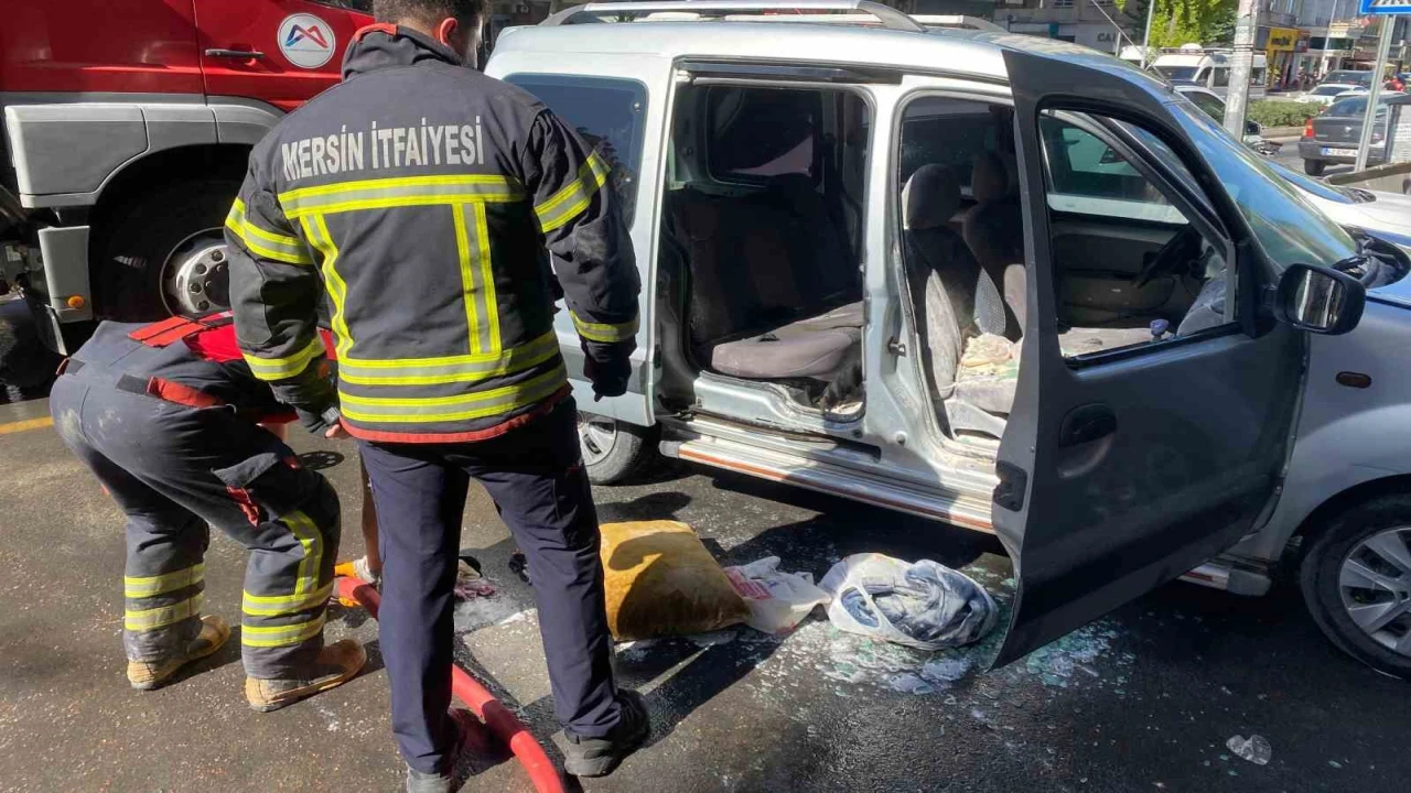 Olay, merkez Akdeniz ilçesi Kiremithane Mahallesi İstiklal Caddesi’nde meydana geldi. İddiaya göre, H.O.’nun park edip ayrıldığı aracından yaklaşık yarım saat sonra duman çıkmaya başladı. Durumu fark eden çevre esnafı Aziz Nadi İngilok, iş yerindeki yangın söndürme tüpünü alarak aracın arka koltuğuna, yarım açık camdan müdahale etti. Bu sırada haber verilen itfaiye ekipleri, kısa sürede olay yerine gelerek yangını büyümeden tamamen söndürdü. Yangında aracın yalnızca arka koltuğunun bir kısmı zarar gördü.