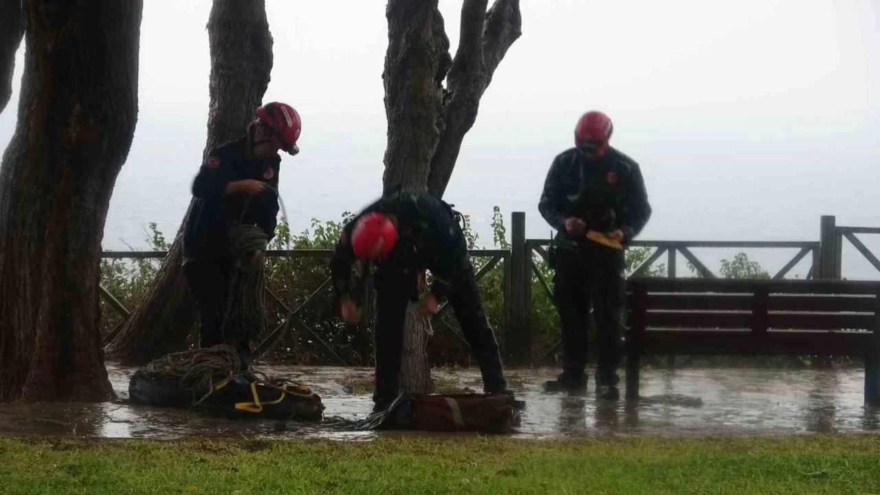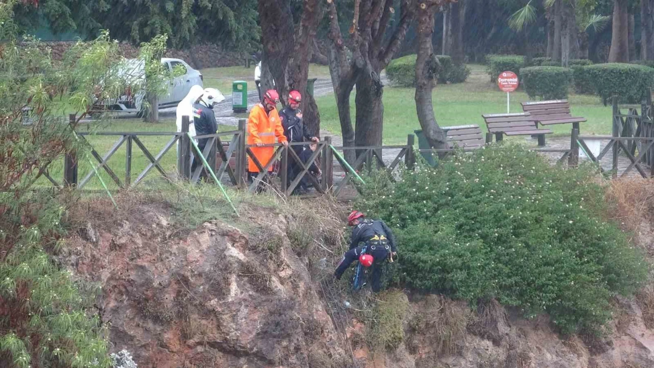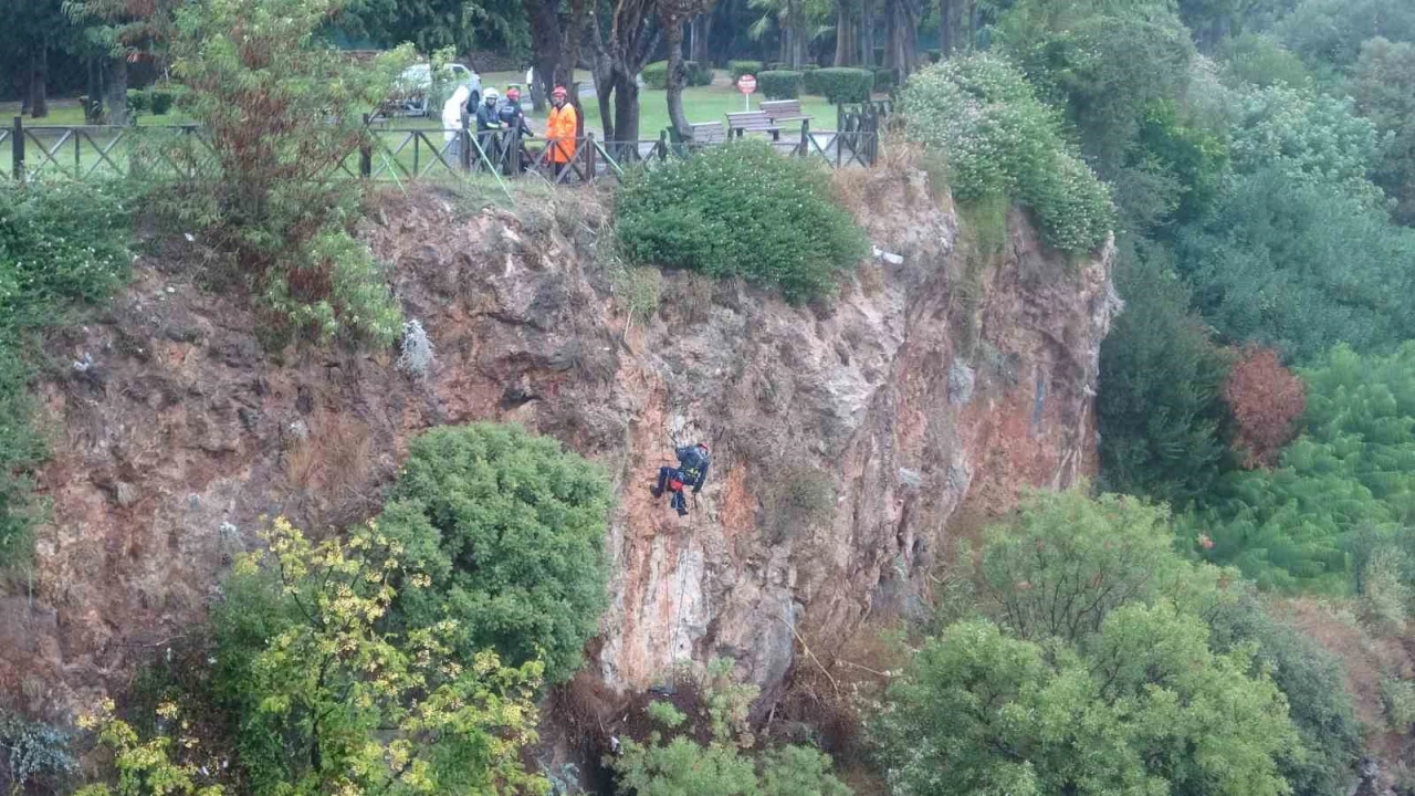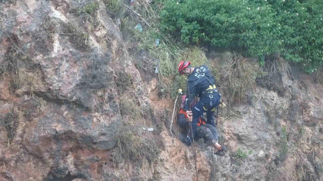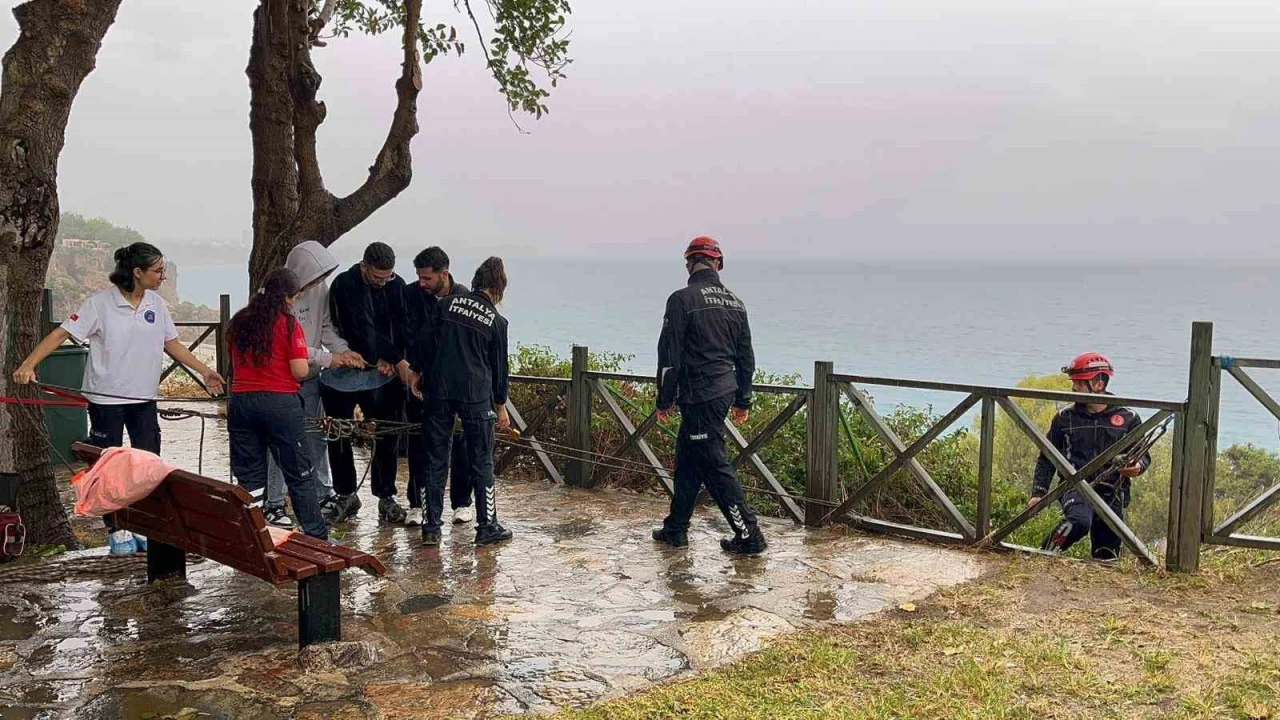 Antalya’da indiği falezlerden yağış nedeniyle geri çıkamayan kadın mahsur kaldı. İtfaiye ekipleri tarafından halat yardımıyla yukarı çekilen kadın kurtarıldı.