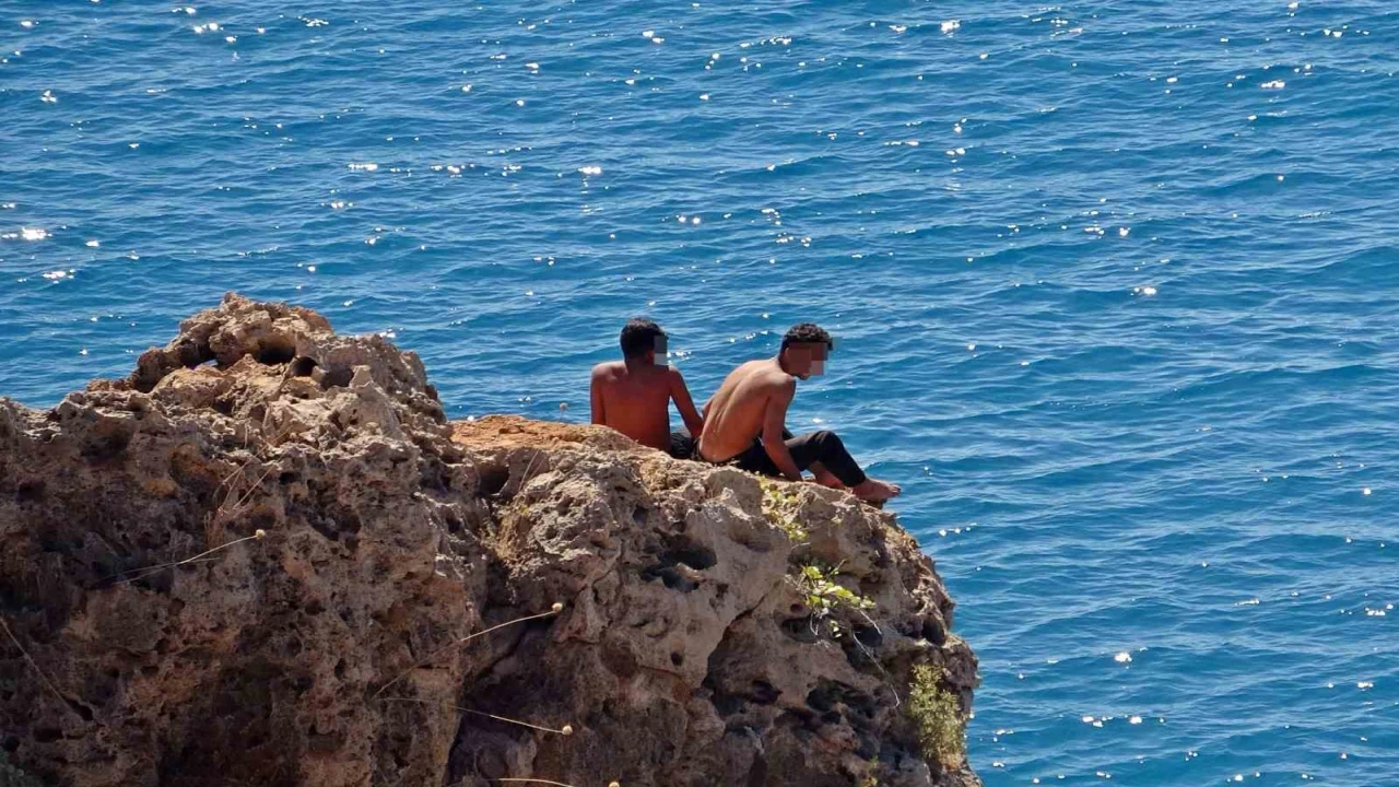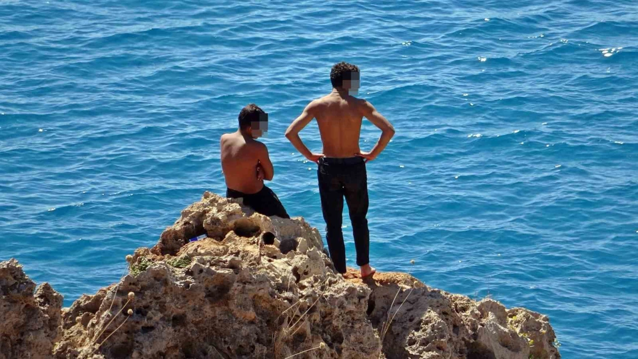Antalya’da yaklaşık 20 metre yükseklikteki falezlere çıkıp denize atlayış gerçekleştirmek isteyen gençler itfaiye ve polis ekiplerini alarma geçirdi. Uzun süre dil dökülmesine aldırış etmeyen gençler, polisin, ‘atlarsan karakola götürürüm’ sözüyle bulunduğu yerden ayrılıp sahil kısmına indi. Gençlerden biri bu sefer ekiplere, ‘Bir kere atlayacaktım’ diyerek de sitemde bulundu.