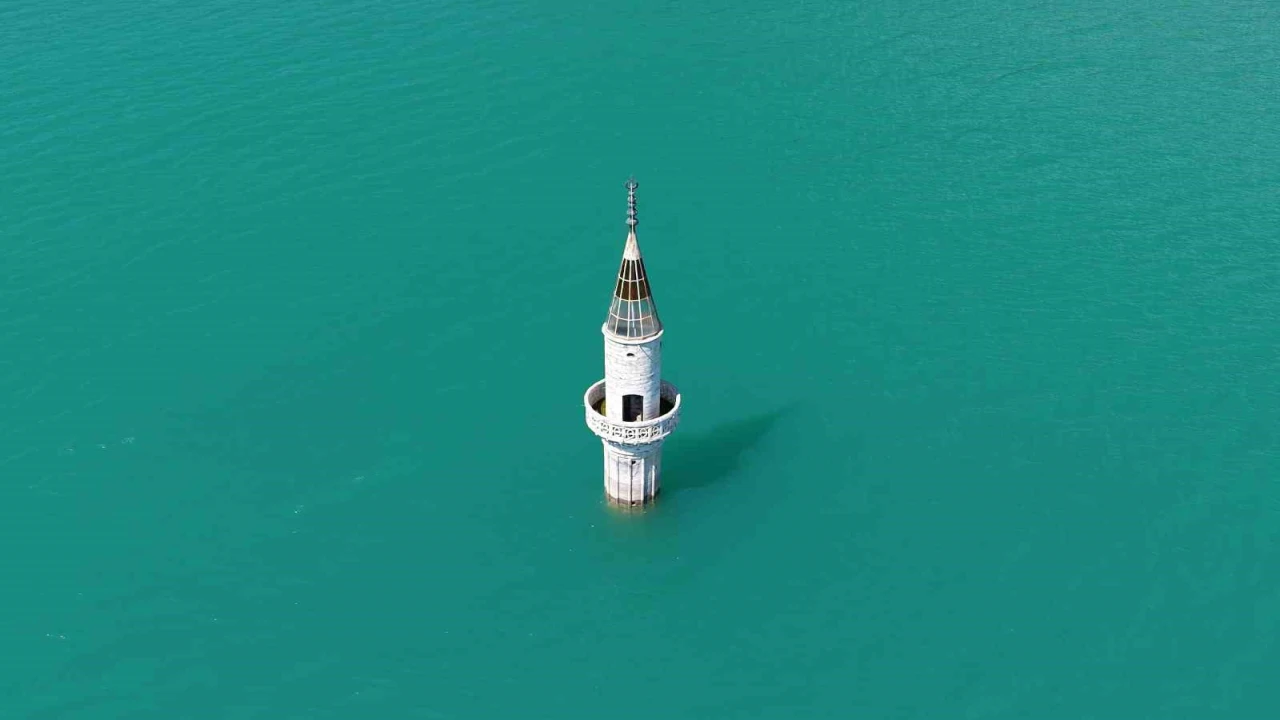 Öte yandan, baraj gölü üzerinde yalnız başına yükselen minare, su yüzeyindeki yansımasıyla dikkat çekiyor. Dron ile kaydedilen görüntüler, hem doğadaki değişimi hem de sular altında kalan bir yerleşimin izlerini gözler önüne sererken, ortaya çıkan manzara geçmiş ile bugünün aynı karede buluştuğu etkileyici bir görüntü sunuyor.