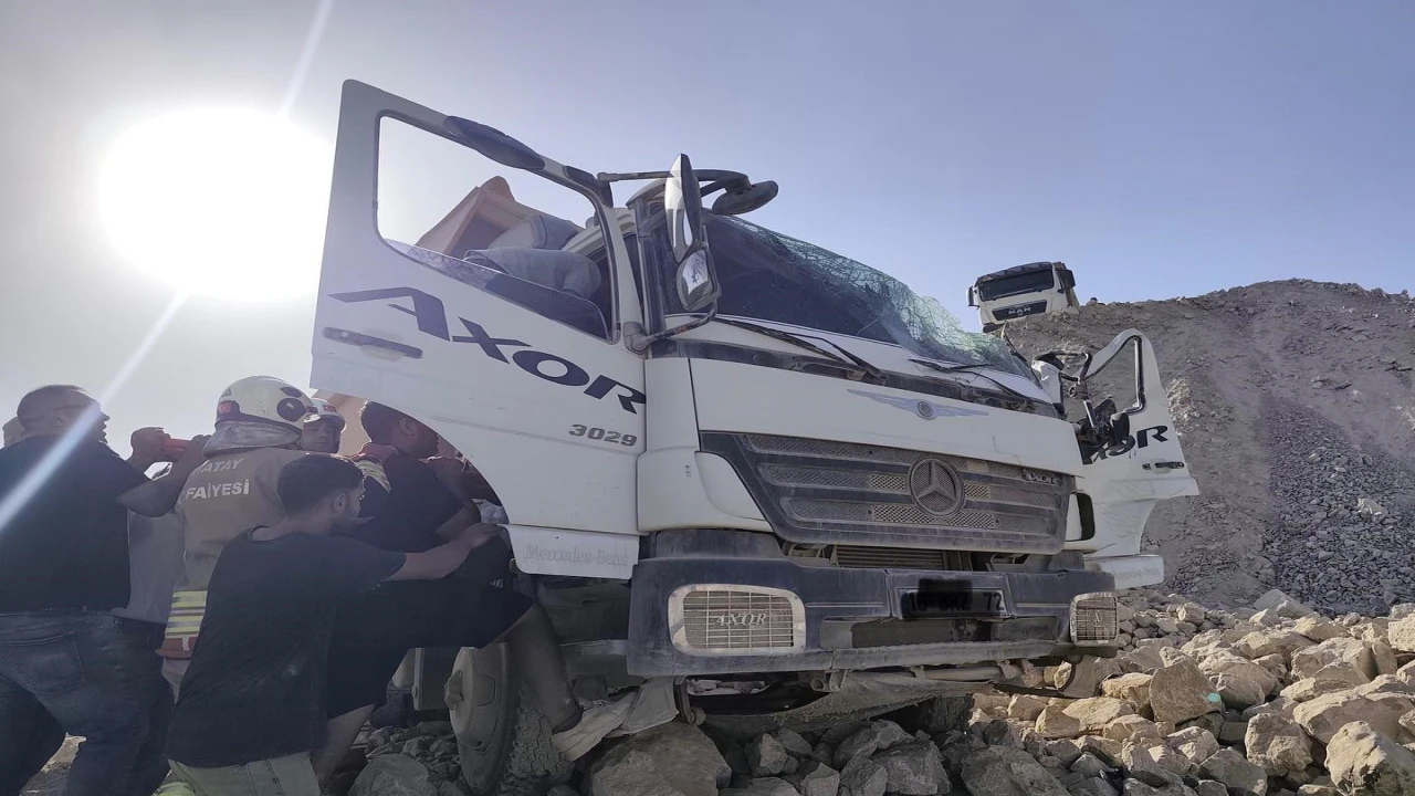HATAY (İHA) - Hatay'da hafriyat döktüğü esnada devrilen kamyonunun sürücüsü araç içerisinde sıkışarak yaralandı.