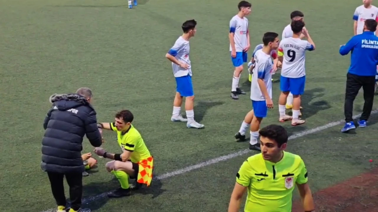 Antalya’nın Muratpaşa ilçesinde Zeytinköy 3 numaralı sahada 2 Mart Pazar günü saat 18.00’da Filinta Spor Kulübü ile Akdenizspor arasında oynanan U17 Ligi 1. Grup karşılaşmasının ikinci yarısında izleyenlerin takdirini toplayan bir an yaşandı. Hidayet Eşer, Başar Demirel ve Enes Yüksel hakem üçlüsünün yönettiği müsabakanın ikinci yarısının başında bir frikik kararı verildi. Topun ağlarla buluştuğu pozisyon esnasında ise akşam ezanı okundu. Golü verdiğini belirtmek için düdüğünü çalan hakem, hemen ardından ise bir düdük daha çalarak futbolcuları saha kenarına davet etti. Oruçlarını su ve hurmayla açan hakemler ile futbolcular, 5 dakikalık aranın ardından maça kaldıkları yerden devam etti.