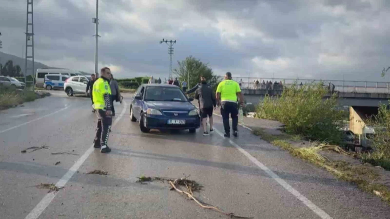Heyelanın kapattığı otoyolda araçlar mahsur kaldı