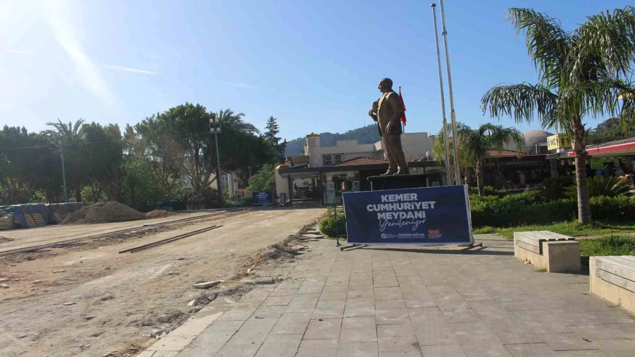 Turizmin göz bebeği Kemer ilçesindeki Cumhuriyet Meydanı’nı baştan sona düzenleyerek büyüten Antalya Büyükşehir Belediyesi, meydanı turizm sezona hazırlıyor.