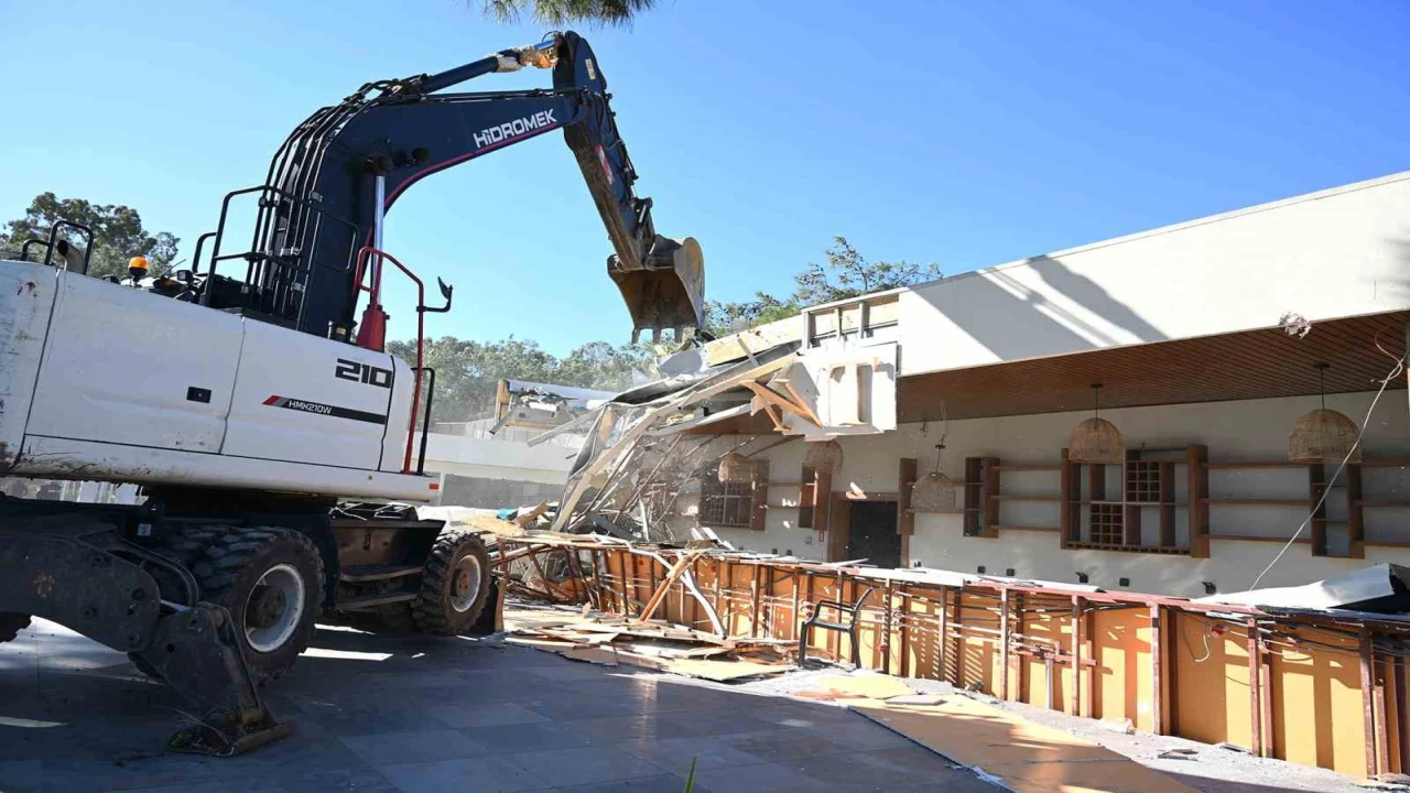 Kemer Belediyesi, Göynük Mahallesi’nde yer alan bir otelde tespit edilen kaçak yapıların yıkımını sürdürüyor.