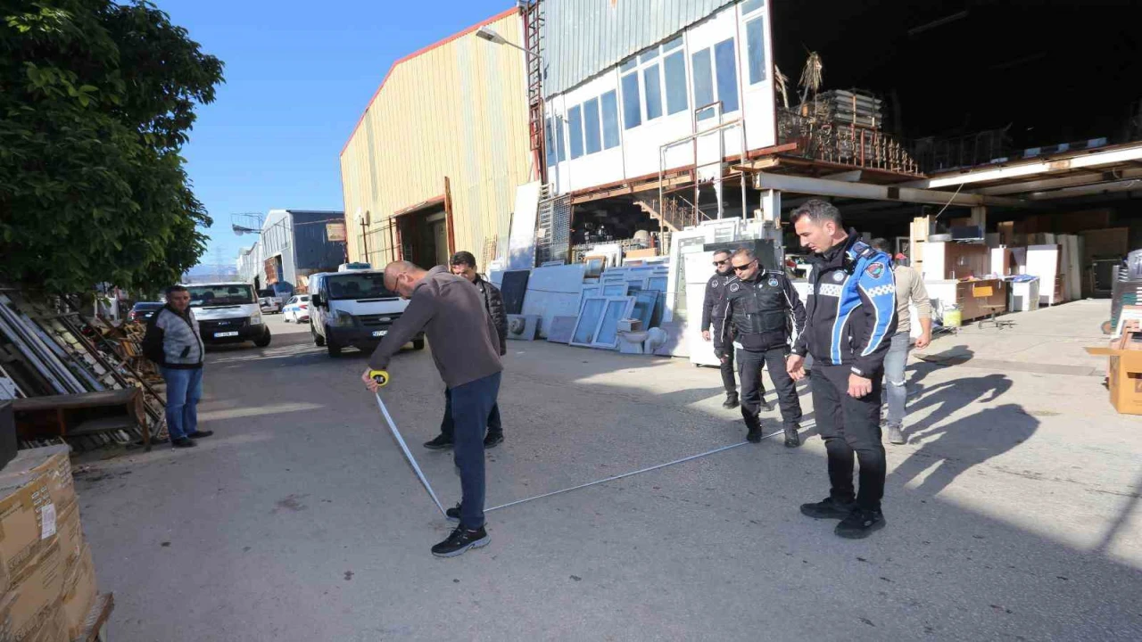 Güneş Mahallesi Ömer Buyrukçu Caddesi’nde yabancı uyruklu berberlere yönelik kapsamlı denetimler gerçekleştiren Kepez Belediyesi Zabıta Müdürlüğü ekipleri, Zeytinlik Mahallesi’ndeki Hurdacılar Sitesi’nde de benzer şekilde yaya ve trafik güvenliğini sağlamak amacıyla denetim yaptı. Hurdacılar Sitesi’ndeki denetimlerde kamu alanı ve yol güzergahında iş yerlerine ait malzemelerin oluşturduğu işgaller kaldırıldı. Yol güzergahı araç, kaldırımlarda yaya trafiğine uygun hale getirildi. Denetimlere Kepez Belediyesi Gelirler Müdürlüğü’ne bağlı Kiralama Şefliği teknik ekipleri de katıldı. Teknik ekip, İmar planında öngörülen yol genişliğini iş yeri sahiplerine klasik yöntemlerle anlatarak, ölçümleri yaptı ve gerekli işaretlemeleri gerçekleştirdi.