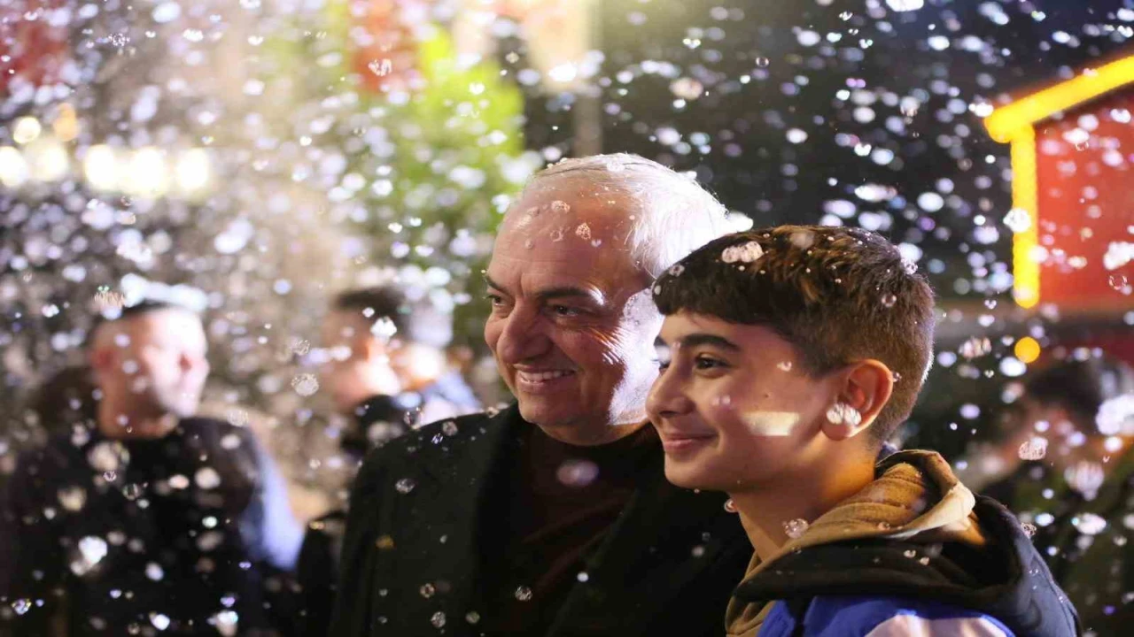 Kepezde yeni yıl heyecanı suni kar yağışıyla başladı
