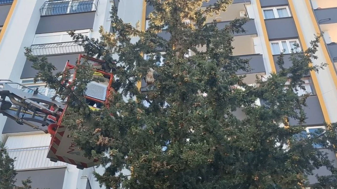 Çevre sakinlerinden Murat Özer Çetin, ilk gelen itfaiye ekibinin bölgede çıkan başka bir yangına müdahale etmek zorunda kaldığını belirterek, "Köpekten kaçan kedi 3 gün ağaçta mahsur kaldı. İtfaiye ekipleri ilk geldiklerinde acil bir yangın ihbarı nedeniyle ayrılmak zorunda kaldı. Daha sonra tekrar geldiler ve kediyi güvenli şekilde kurtardılar" dedi.