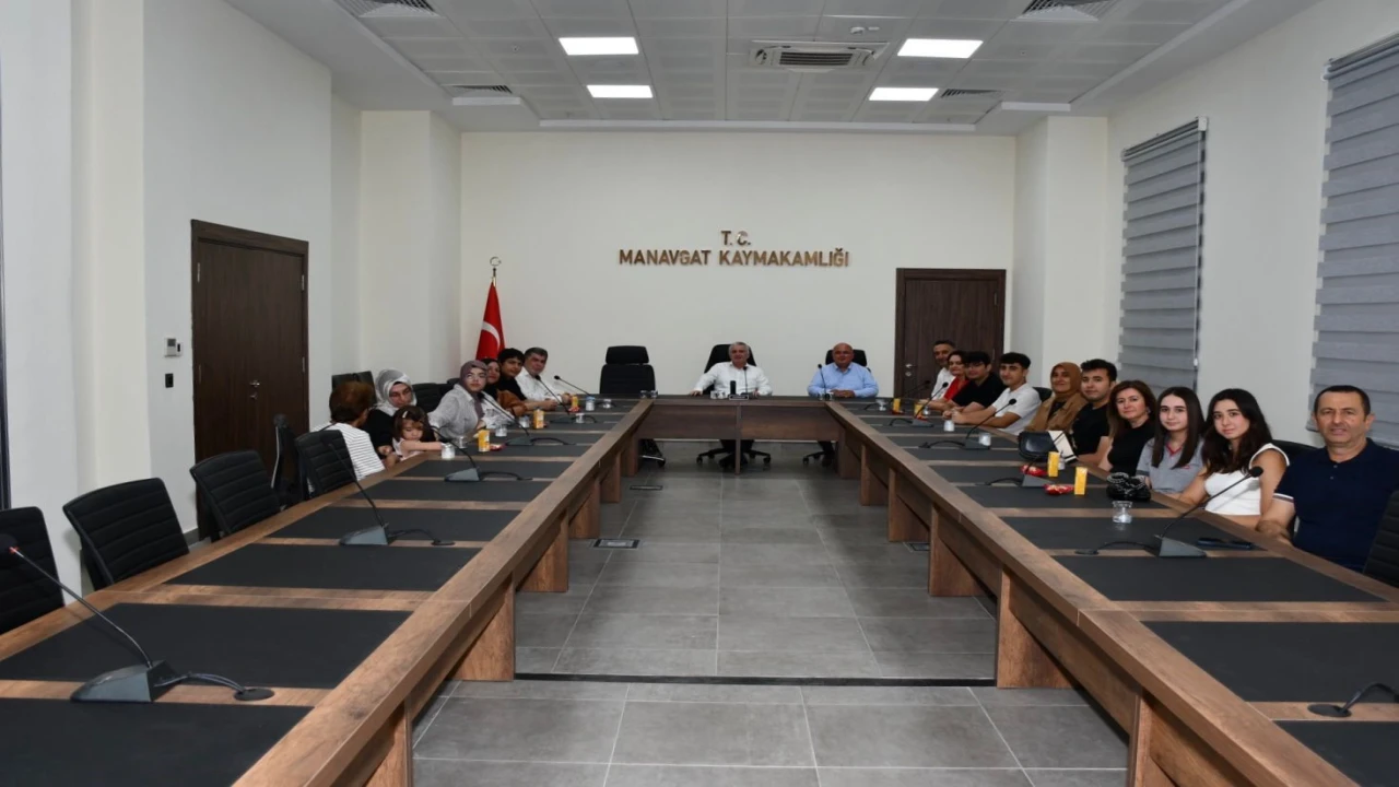 Antalya’nın Manavgat ilçesinde Liselere Geçiş Sistemi (LGS) sınavında 500 tam puan alarak Türkiye birincisi olan öğrenciler ile Yükseköğretim Kurumları Sınavı’nda (YKS) ilk bine giren başarılı öğrenciler, Manavgat Kaymakamı Adil Karataş’ı makamında ziyaret etti. Ziyarette İlçe Milli Eğitim Müdürü Ali Hakan Öz de hazır bulundu.