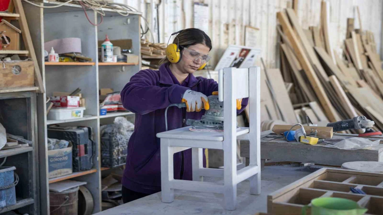 Mersin Büyükşehir Belediyesi Kadın ve Aile Hizmetleri Dairesi Başkanlığı’nda görev yapan Marangoz Ustası Teslime Özdemir, Tarsus Gençlik Kampı Geri Dönüşüm Atölyesi’nde 2020’den bu yana, birimlerin malzemelerini ürettiklerini anlatarak, "Birimlerimizden gelen ürünlerin bakım, onlarım ve tamir işlerini bu atölyede yapıyoruz. Geri dönüşüm atölyemizde birimlerimizin ihtiyacı olan masa, sandalye, dolap ve büro malzemelerinden tutun, akla gelecek her türlü ihtiyacı üretiyoruz. 2020’den 2025 yılına kadar daire başkanlığımıza bağlı 40 birim açıldı. Bu birimlerden 38’inin malzemeleri burada üretildi. Diğer dairelerden gelen talepleri de elimizden geldiğince yerine getirmeye çalışıyoruz" ifadelerini kullandı.