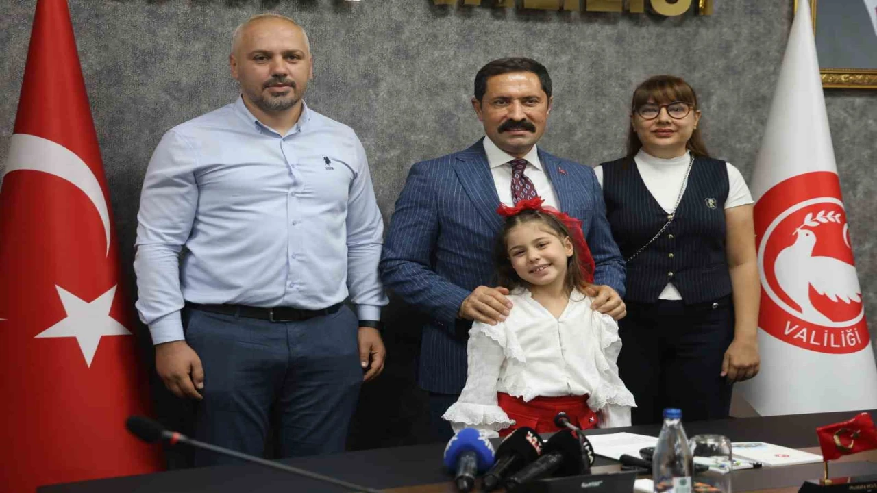 'TEKNOFEST Mavi Vatan' yarışmasında birinci olan minik ressam Asya, Valiyi resmettiği çalışmasında gönülleri fethetti