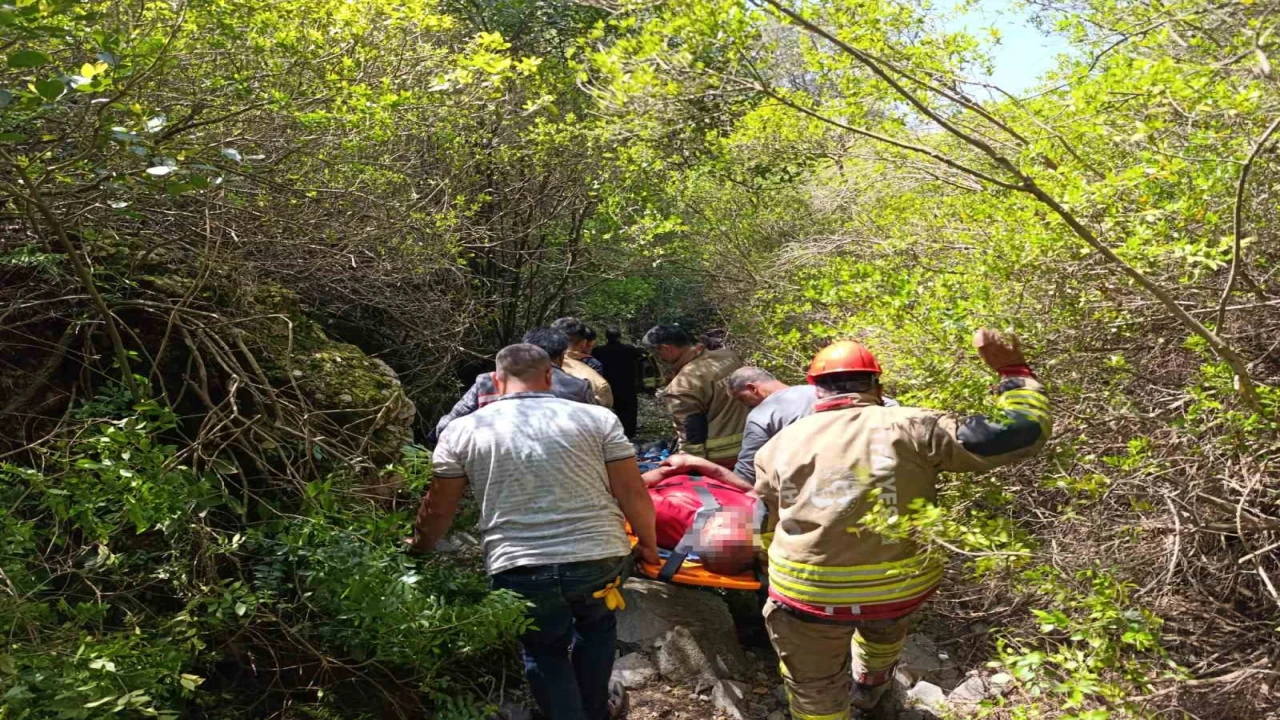 Ormanlık alanda uçurumdan düşen vatandaş yaralandı