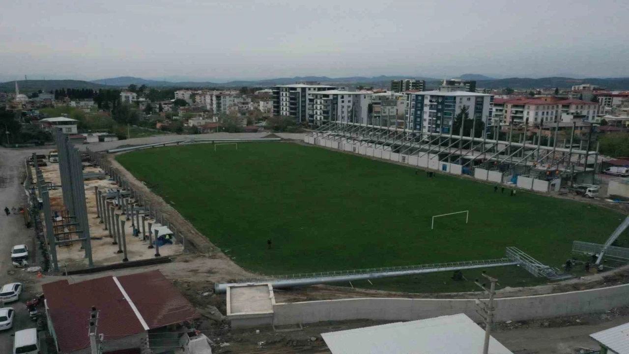 Osmaniye’de 6 Şubat merkezli depremlerde tribünü ağır hasar alarak kontrollü şekilde yıkılan 7 Ocak Stadyumu’nun yerine yapılan yeni stadyumda çalışmalar tüm hızıyla sürüyor.