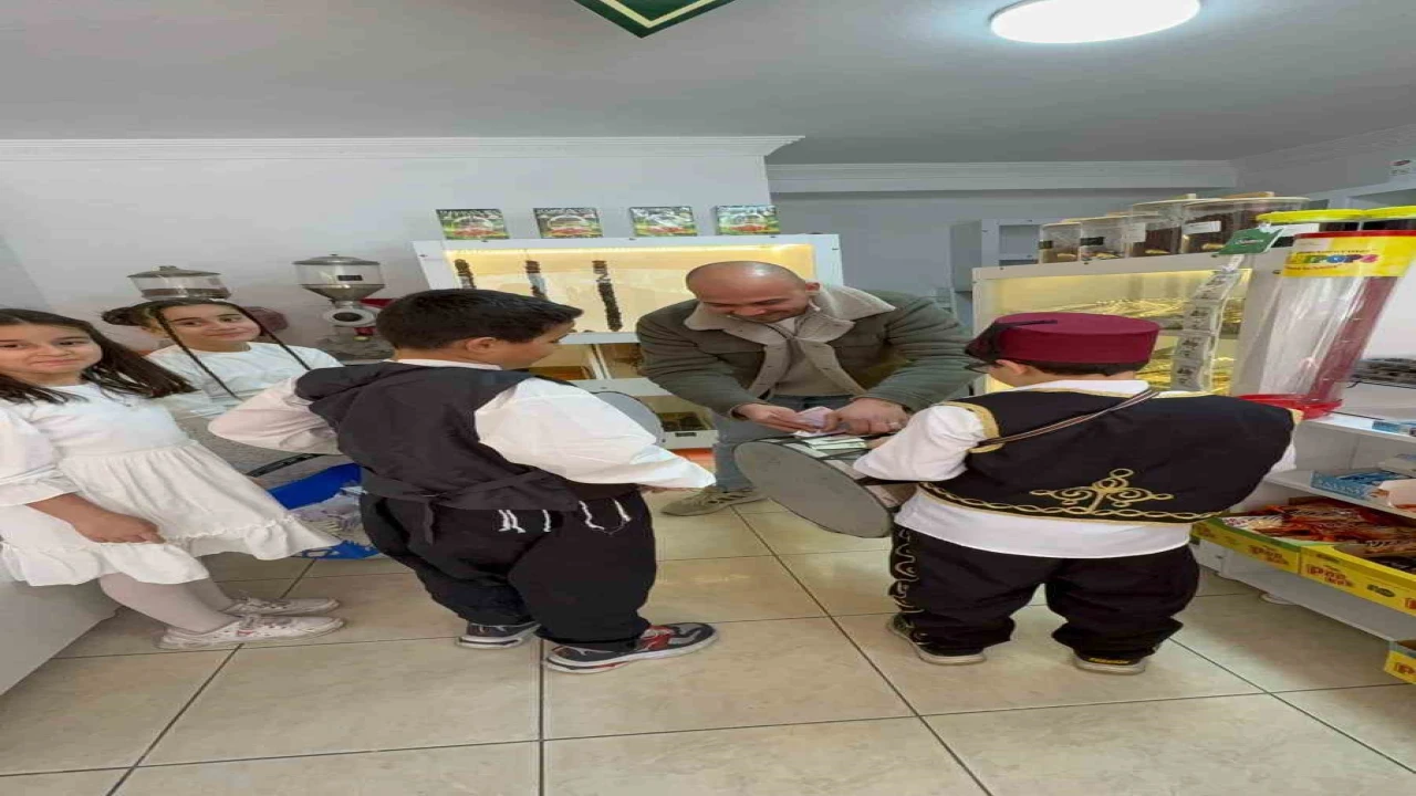 Osmaniye’de ilkokul öğrencileri, geleneksel kıyafetlerle Ramazan manileri okuyarak esnafı ziyaret etti. Gül lokumu dağıtan öğrencilerin topladığı bahşişlerle ihtiyaç sahibi öğrencilere bayramlık alınacağı belirtildi.