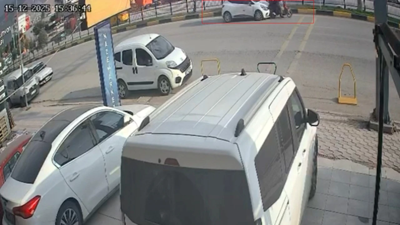 HATAY (İHA) - Hatay'da otomobilin çarpttığı motosikletteki 2 kişinin yere savularak yaralandığı kaza anı güvenlik kamerasına yansıdı.