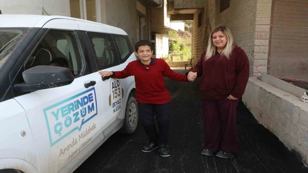 HATAY (İHA) - Hatay Büyükşehir Belediyesi, ihbar üzerine özel gereksinimli birey Sebahattin Delioğlu’nun evinin yolunu asfaltlayarak çocuğun sokakta rahatça yürüyebilmesini sağladı.
