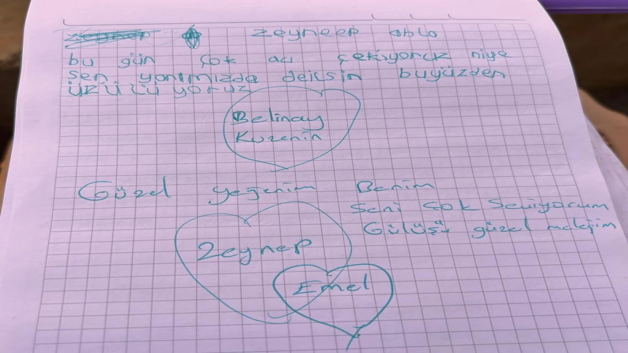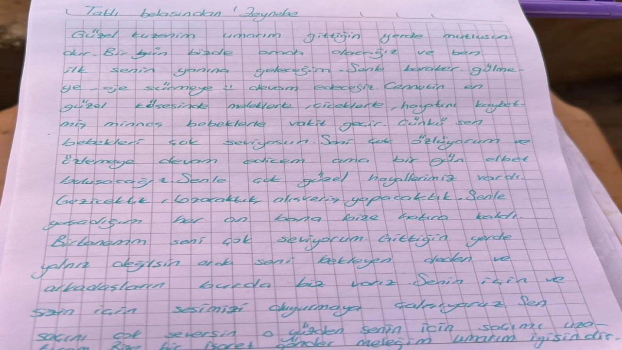 Bir başka notta ise, "Tatlı Belinay’ım canım gittiğin yerde mutlusundur. Bir gün biz de oraya geleceğiz ve ben ilk senin yanına geleceğim. Seni karalar giyinip yeşile sarmaya devam edeceğiz. Cennetin en güzel köşesinde meleklerle birlikte hayatını kaybetmiş minnoş bebeklerle birlikte çok seviyoruz. Seni çok özlüyorum ve özlemeye devam edeceğim ama bir gün elbet buluşacağız. Senle çok güzel hayallerimiz vardı. Gezecektik beraber aktivite yapacaktık. Senle yaşadığım her an bana kazanç kattı. Biliyorum seni çok seviyorum gittiğin yerde yalnız değilsin" ifadeleri yer alıyor.
