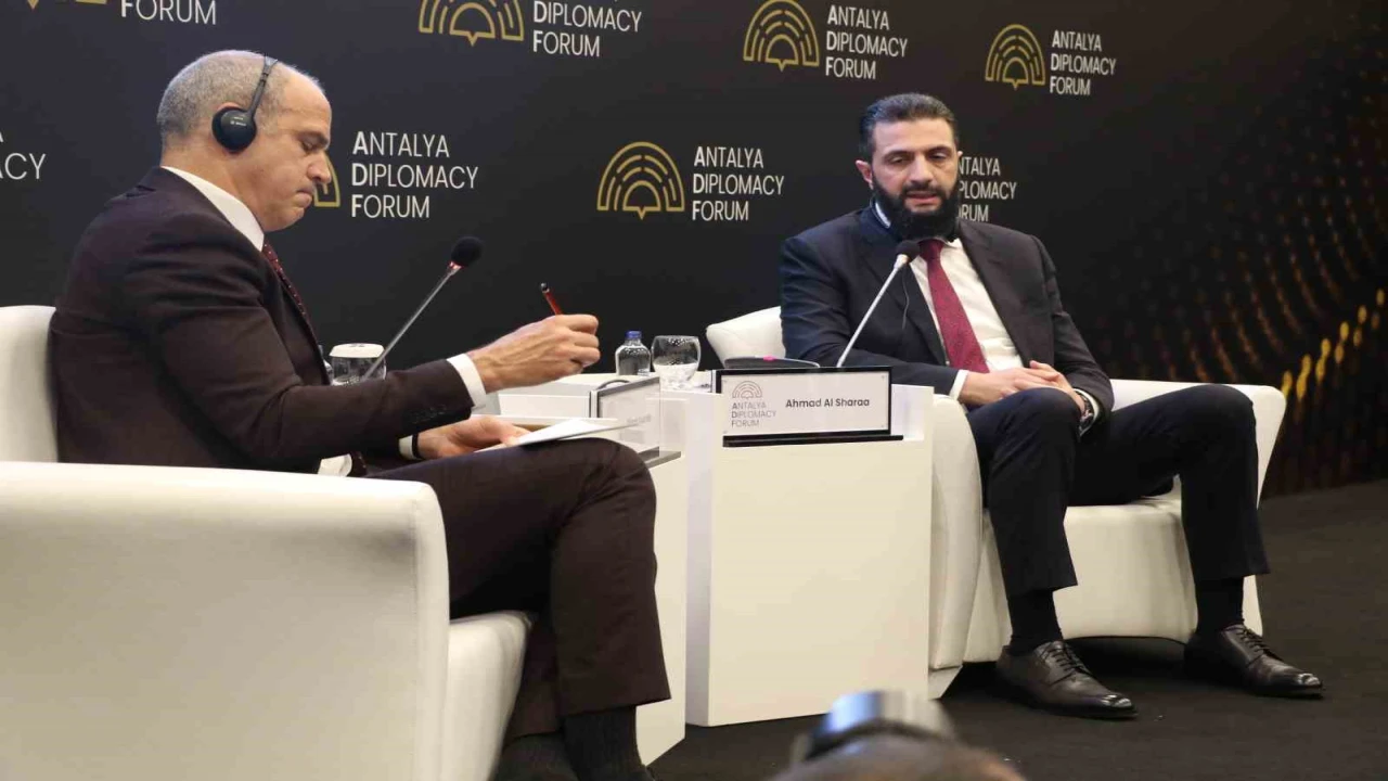 SURİYE CUMHURBAŞKANI AHMED ŞARA, KATILDIĞI ANTALYA DİPLOMASİ FORUMU'NDA YAPTIĞI AÇIKLAMADA, "BUGÜN BİZ SURİYE İÇİN YENİ BİR TARİH ÇİZİYORUZ; SURİYE’NİN ÇATIŞMALAR İÇİN BİR POSTA KUTUSU OLMAKTAN ÇIKIŞININ TARİHİNİ" DEDİ.